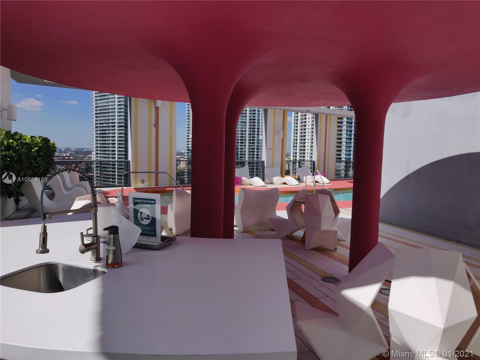 Beutiful SPLIT unit. 2 bed, 2 bath (one bathroom with tub - the other with shower)+ DEN. 1086 sq ft living area + 70 sq ft balcony. TOTAL 1156 sq ft. Nice size living room with exit to good size balcony, open kitchen. Carpet floors in living room and in the bedrooms. Very bright unit. Skydeck swiming pool, party room and gym. Valet parking only. TENANT OCCUPIED until JUNE 2021