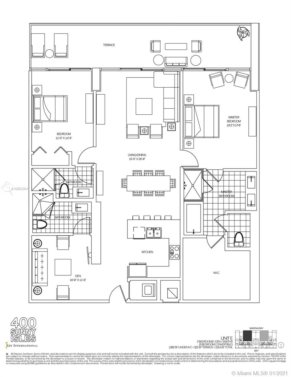 Wooww.. that's certainly the best opportunity in 400 Sunny Isles. This 2 + Den and 3 full baths it is already converted into 3 suites with huge balcony where you have a panoramic Intracoastal, Ocean and Oleta National Park views all in ones to relax and enjoy. It is a High floor unit, High End finishes in a High End Condominium and ready to move in. All furniture is negotiable. Balcony from living area, master bedroom and second bedroom, lots of natural light and very large walk-in closet from Master bedroom and European Kitchen cabinetry and appliances. Building with 24hrs front desk, tennis court, dry and wet Marina with full services, Valet parking, 2 gyms, amazing 33Mts pool, Jacuzzi, sauna, spa, massage salon, kitchen bar, walking distance to the beach, restaurants and much more.