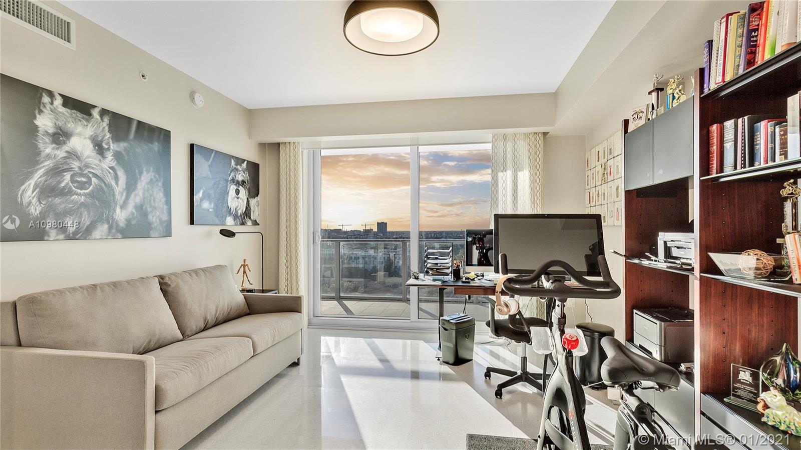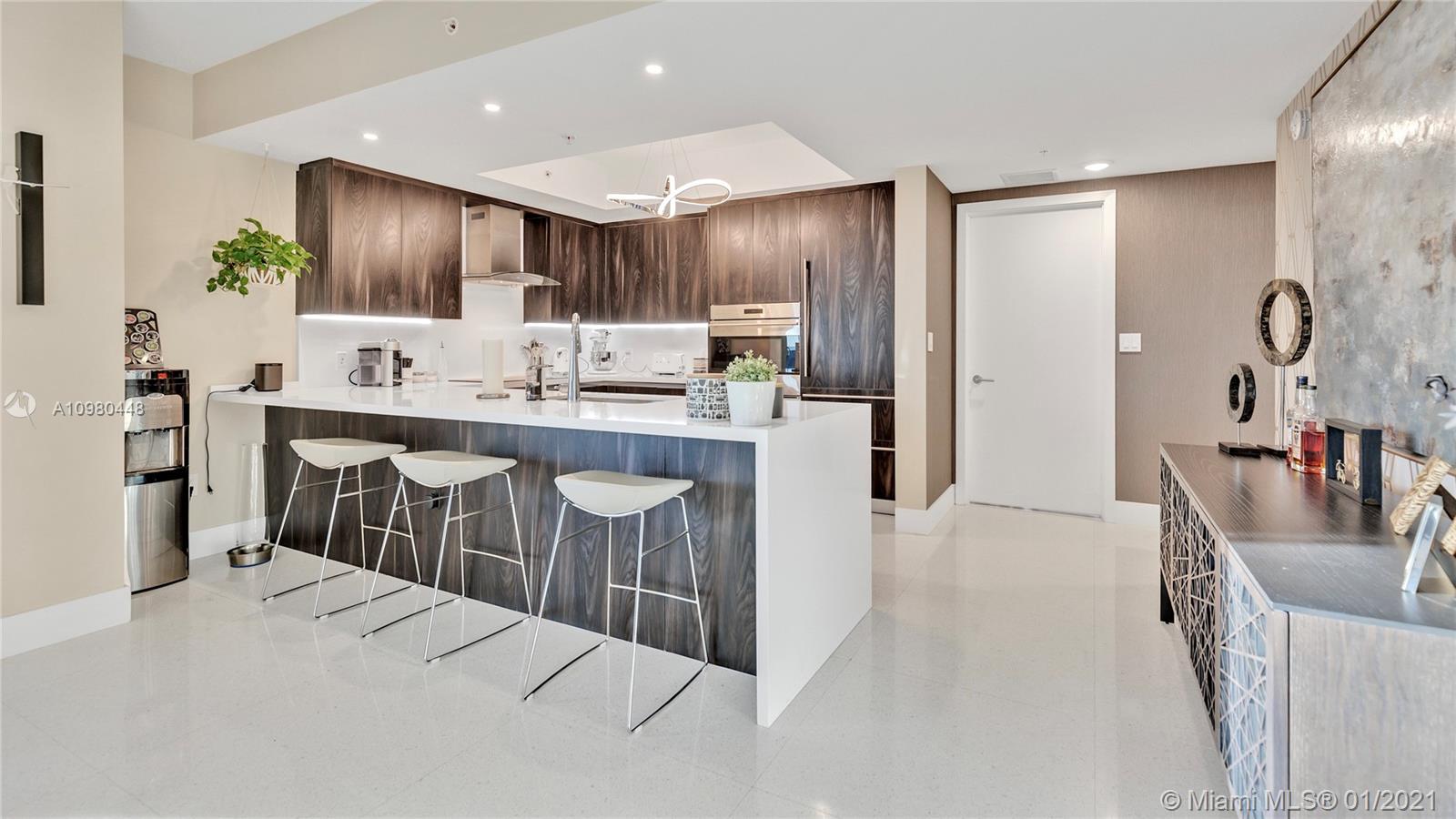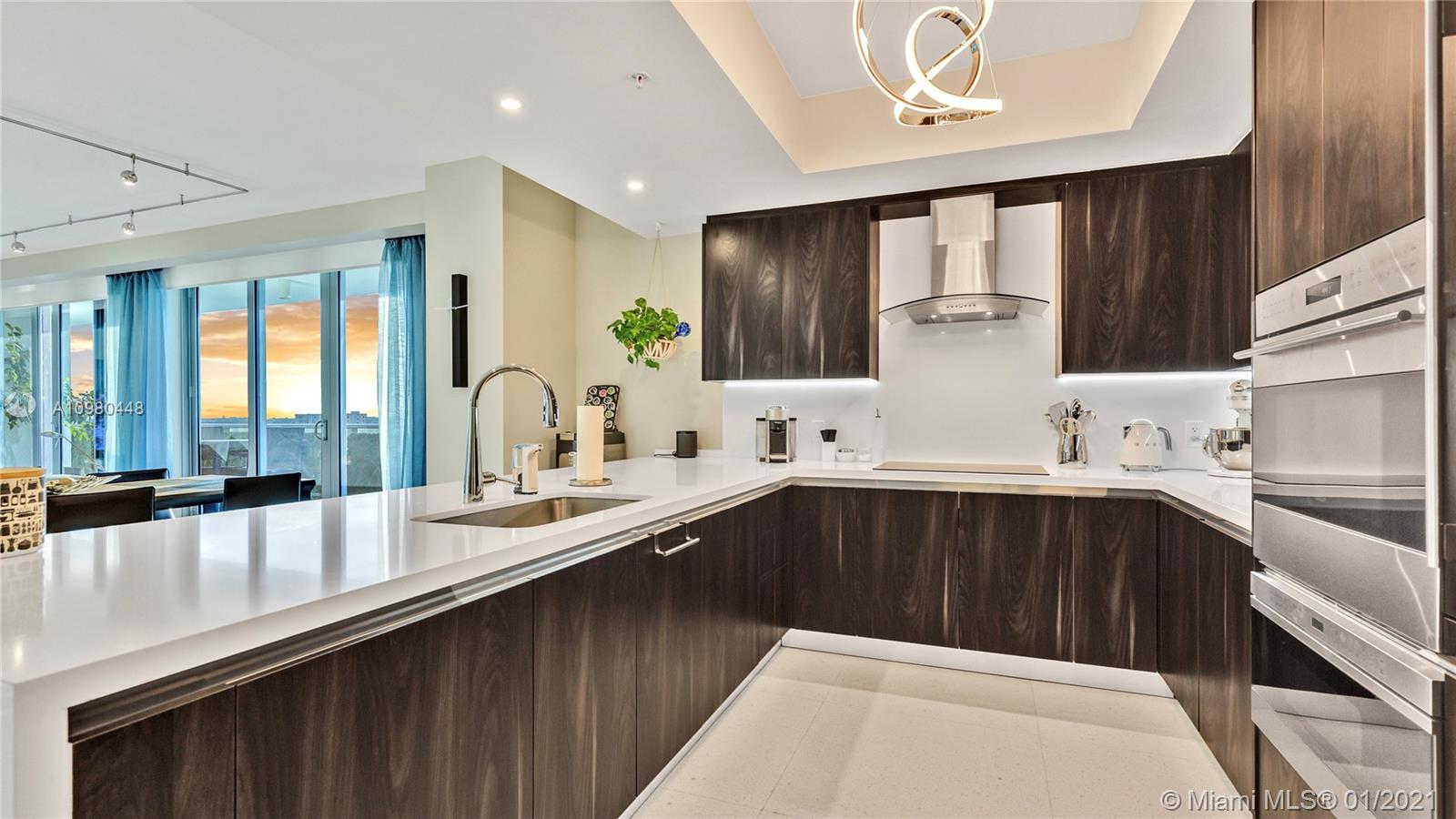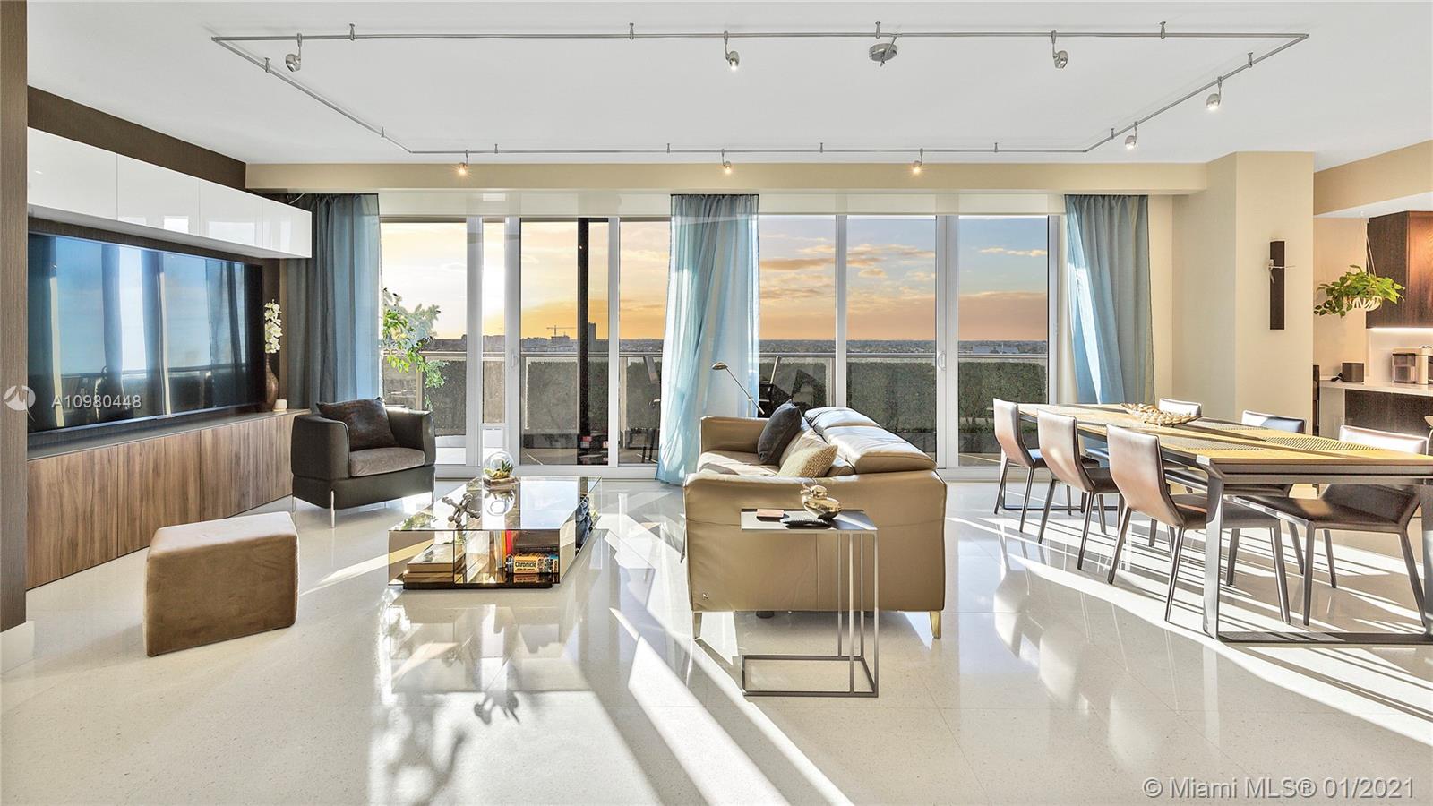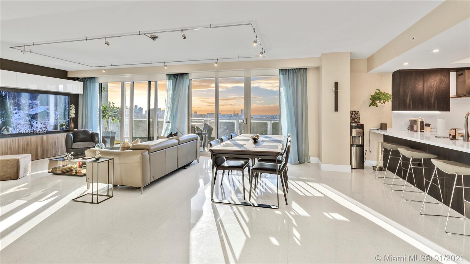 Exquisite 2 Bedroom, 2.5 Bathroom with Panoramic Skyline & Sunset Views, Open Concept, Custom Work Throughout & 72' Terrace with BBQ. Chef's Kitchen with Italian Cabinetry, Quartz Countertops, Wolf Oven & Induction Cooktop, Sub-Zero Fridge. The Open Living Room Includes Custom Storage, Entertainment Wall & Chic Lights. Spacious Primary Bedroom Includes Walk-In Closet, Combo Storage/Entertain Built-Ins & Primary Bathroom with Dual Backlit Vanities & Grandiose Shower. RIVA Residences Provides 40,000 SF of Amenities: Heated Lap Pool, 7,000 SqFt Gym with YOGA Studio, Resort Style SPA with Sauna, Steam & Treatment Rooms, Resident's Lounge, Sunset Deck & Jacuzzi, Cucina to Entertain, 24/7 Front Desk Attendant, Valet, 2 Dog Walks & Central Location. Private, 2 Car Garage for Additional $150k.