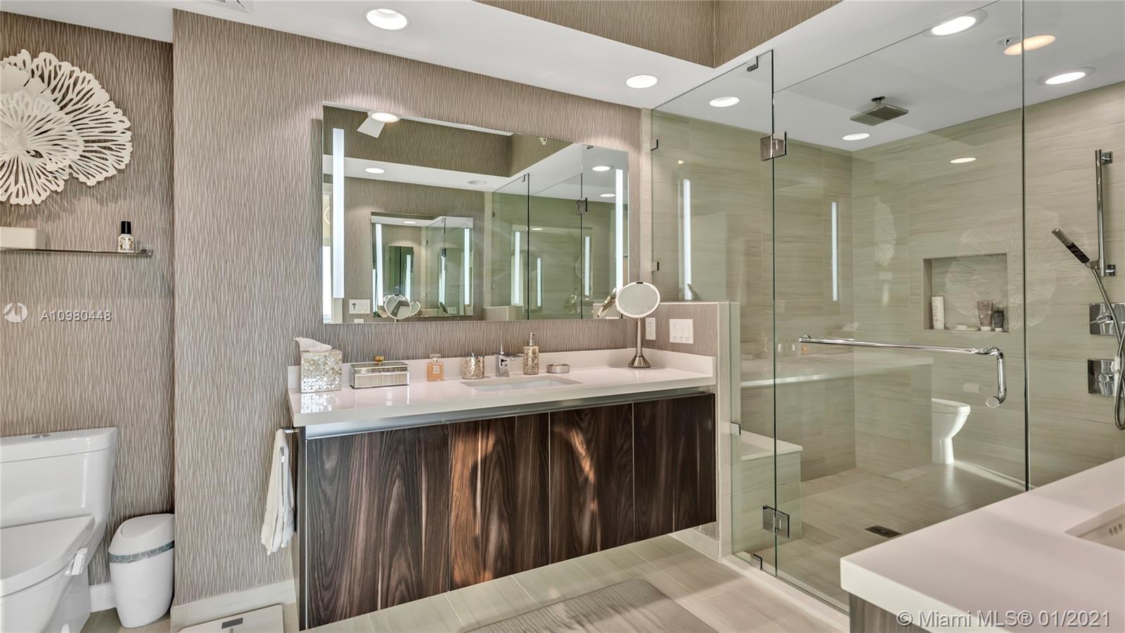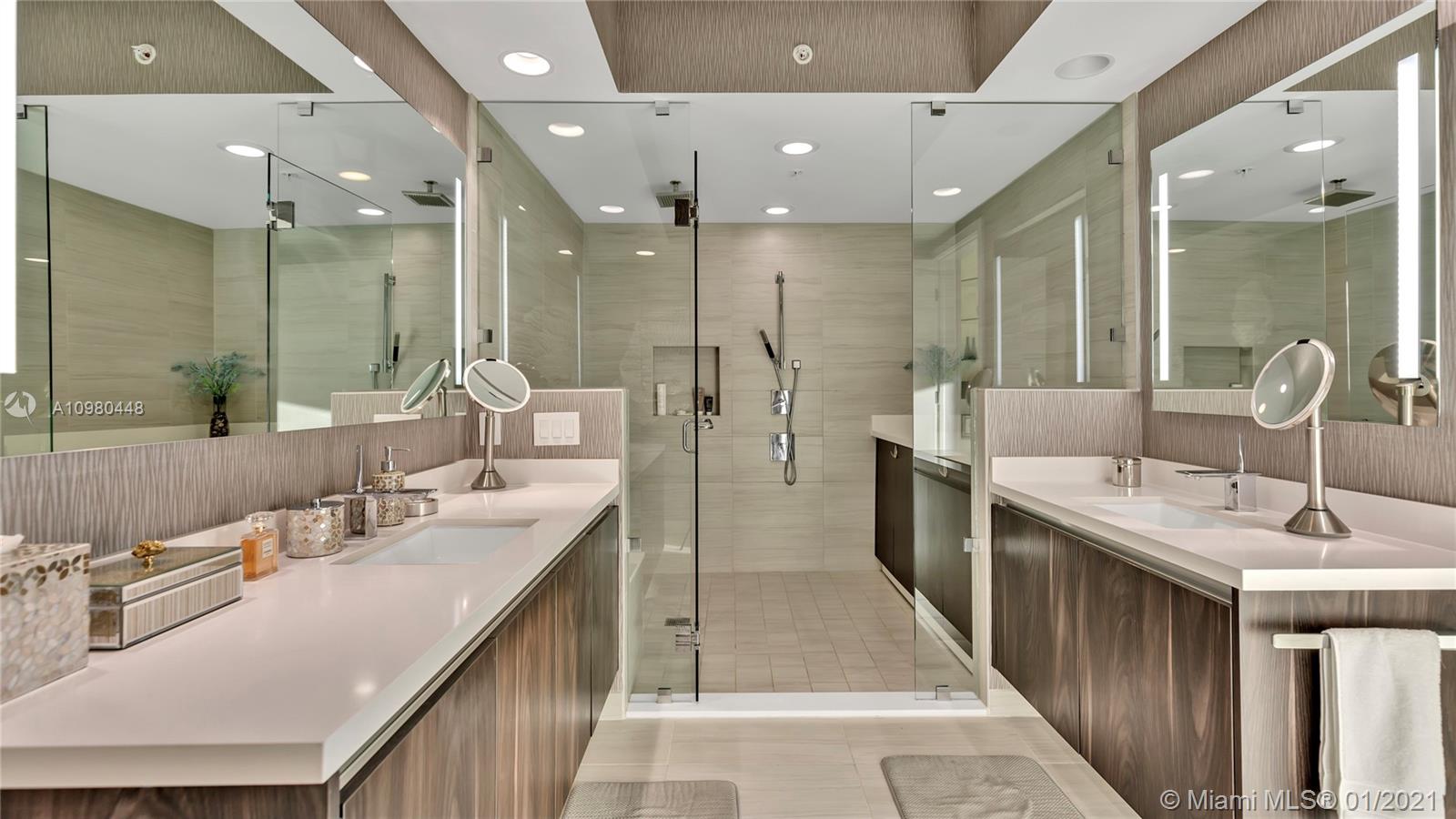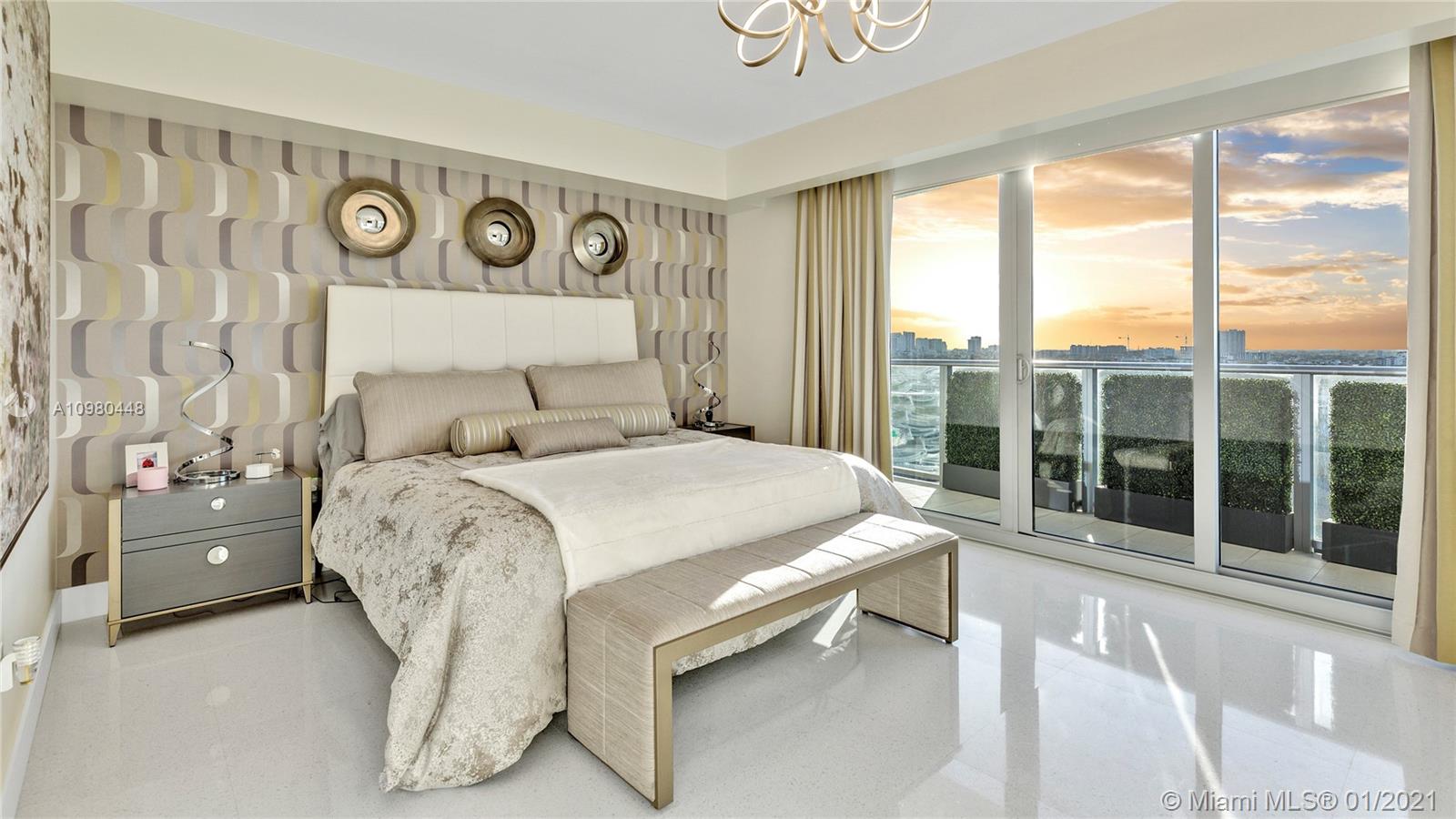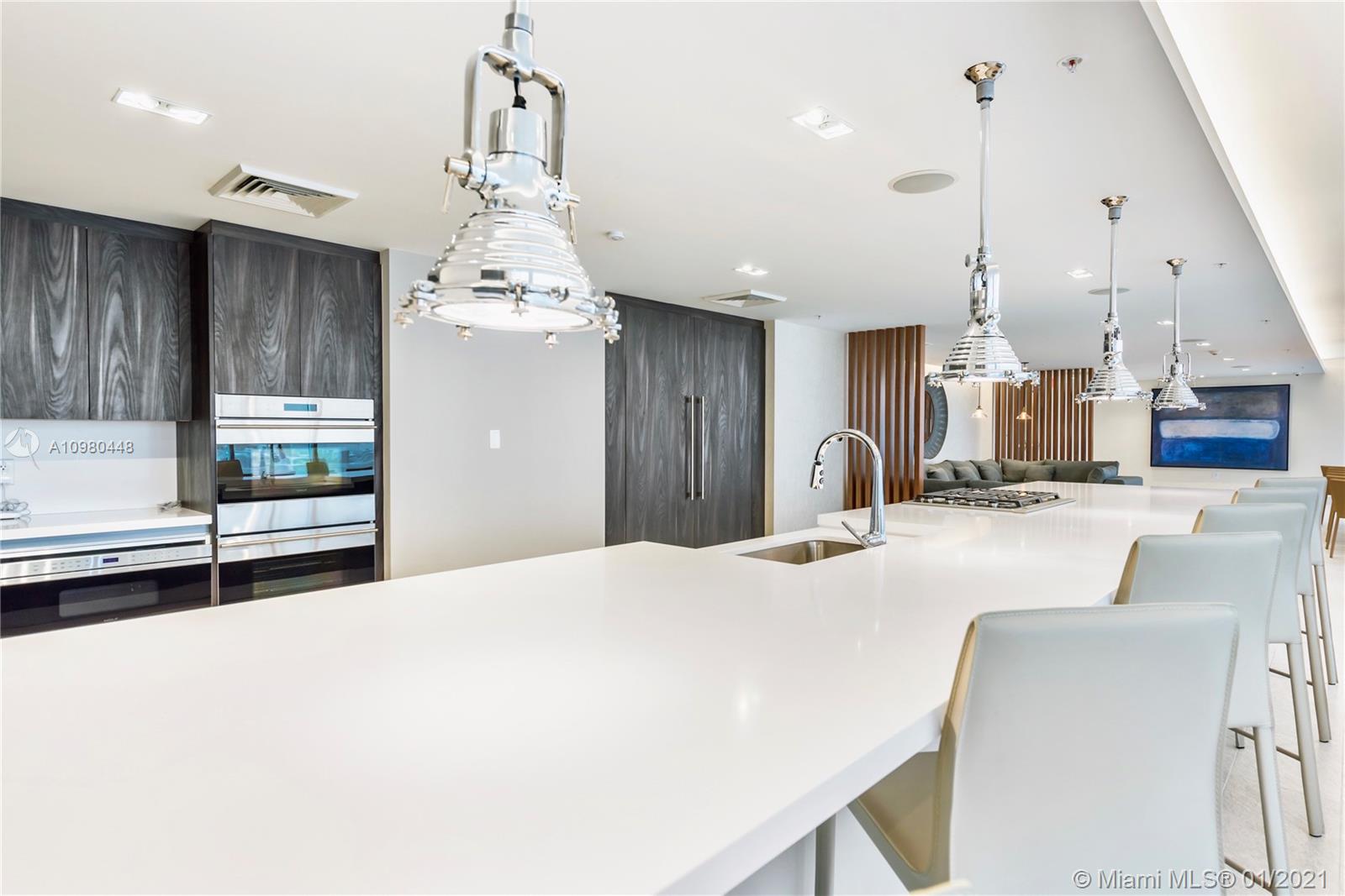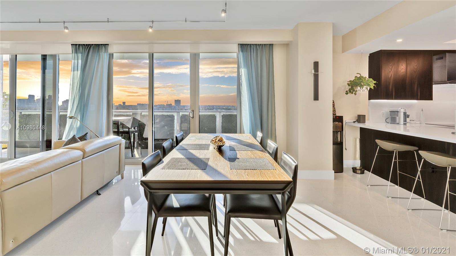 Exquisite 2 Bedroom, 2.5 Bathroom with Panoramic Skyline & Sunset Views, Open Concept, Custom Work Throughout & 72' Terrace with BBQ. Chef's Kitchen with Italian Cabinetry, Quartz Countertops, Wolf Oven & Induction Cooktop, Sub-Zero Fridge. The Open Living Room Includes Custom Storage, Entertainment Wall & Chic Lights. Spacious Primary Bedroom Includes Walk-In Closet, Combo Storage/Entertain Built-Ins & Primary Bathroom with Dual Backlit Vanities & Grandiose Shower. RIVA Residences Provides 40,000 SF of Amenities: Heated Lap Pool, 7,000 SqFt Gym with YOGA Studio, Resort Style SPA with Sauna, Steam & Treatment Rooms, Resident's Lounge, Sunset Deck & Jacuzzi, Cucina to Entertain, 24/7 Front Desk Attendant, Valet, 2 Dog Walks & Central Location. Private, 2 Car Garage for Additional $150k.