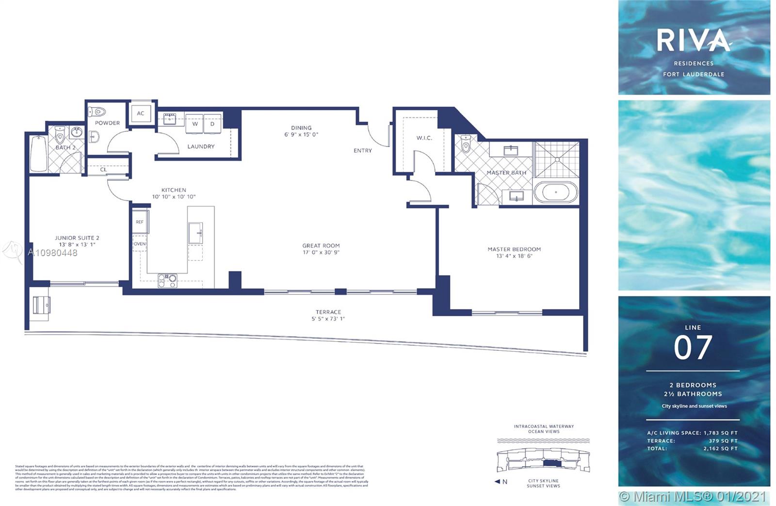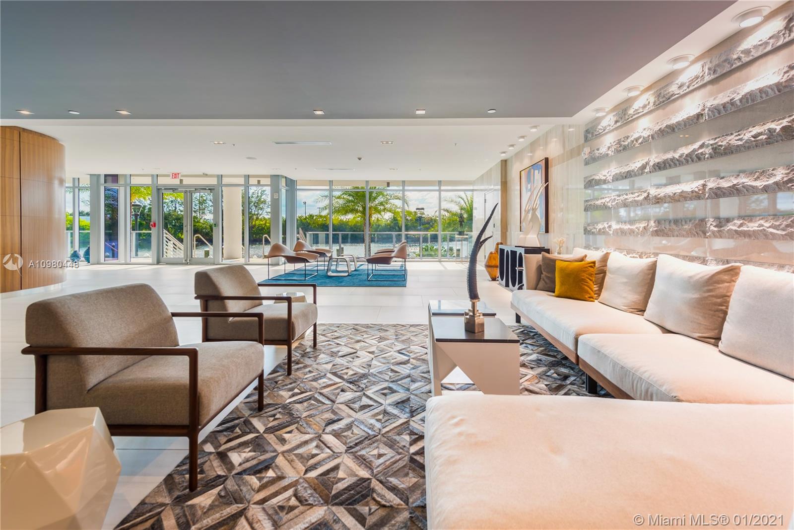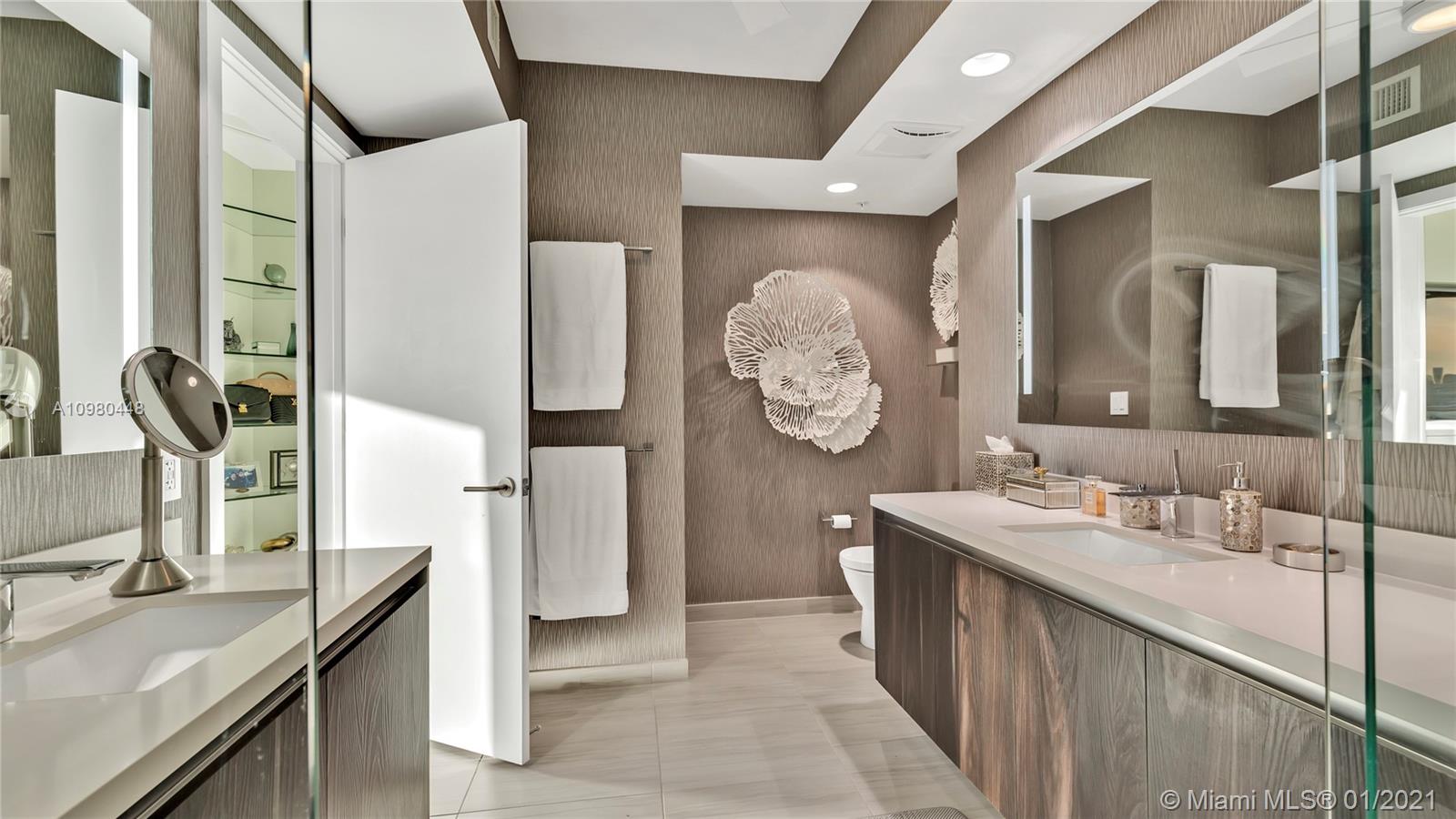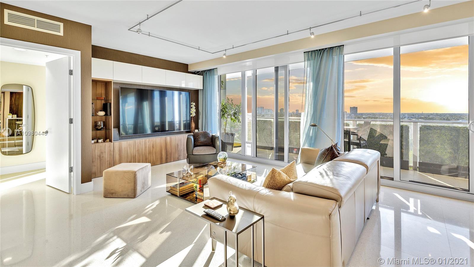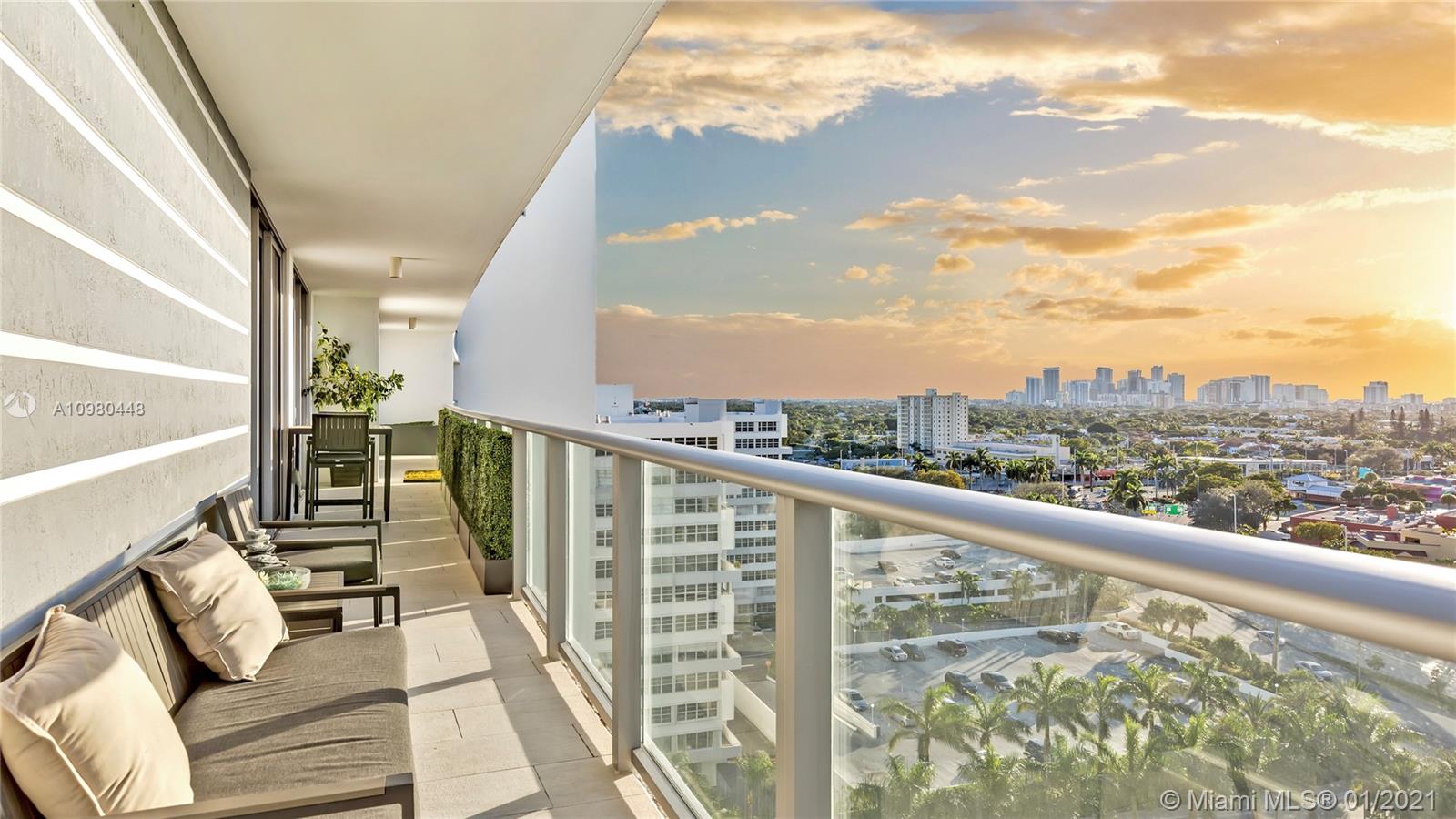 Exquisite 2 Bedroom, 2.5 Bathroom with Panoramic Skyline & Sunset Views, Open Concept, Custom Work Throughout & 72' Terrace with BBQ. Chef's Kitchen with Italian Cabinetry, Quartz Countertops, Wolf Oven & Induction Cooktop, Sub-Zero Fridge. The Open Living Room Includes Custom Storage, Entertainment Wall & Chic Lights. Spacious Primary Bedroom Includes Walk-In Closet, Combo Storage/Entertain Built-Ins & Primary Bathroom with Dual Backlit Vanities & Grandiose Shower. RIVA Residences Provides 40,000 SF of Amenities: Heated Lap Pool, 7,000 SqFt Gym with YOGA Studio, Resort Style SPA with Sauna, Steam & Treatment Rooms, Resident's Lounge, Sunset Deck & Jacuzzi, Cucina to Entertain, 24/7 Front Desk Attendant, Valet, 2 Dog Walks & Central Location. Private, 2 Car Garage for Additional $150k.