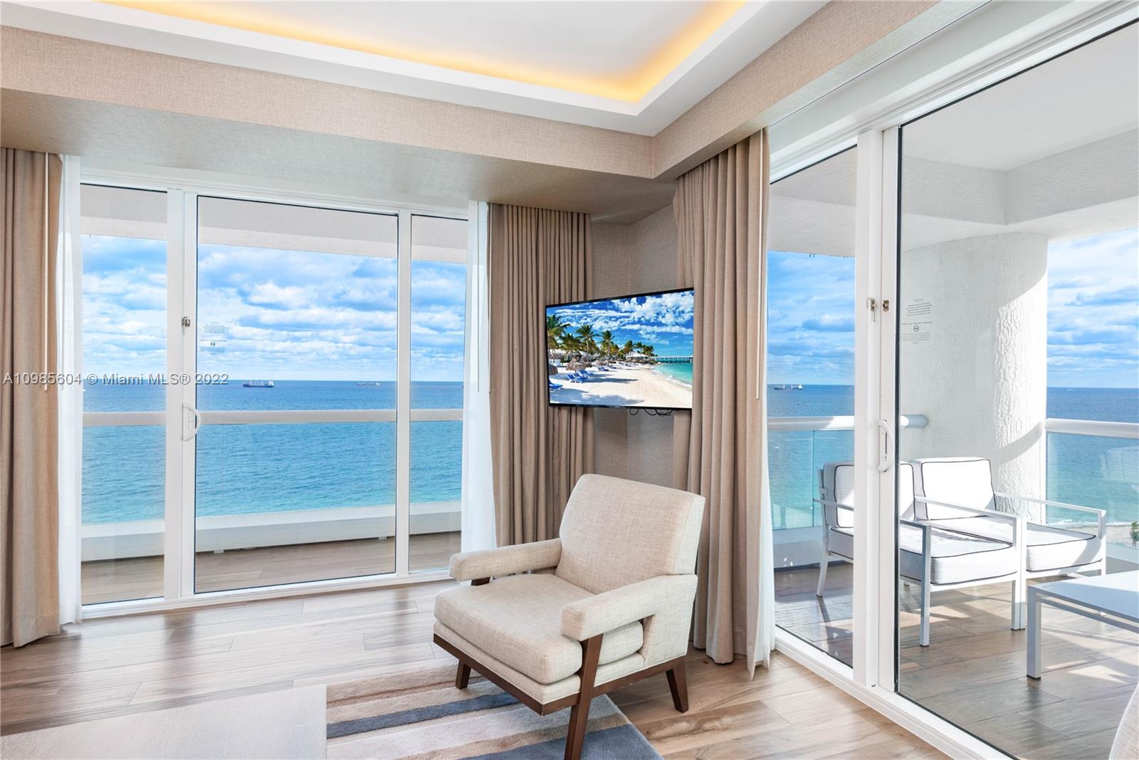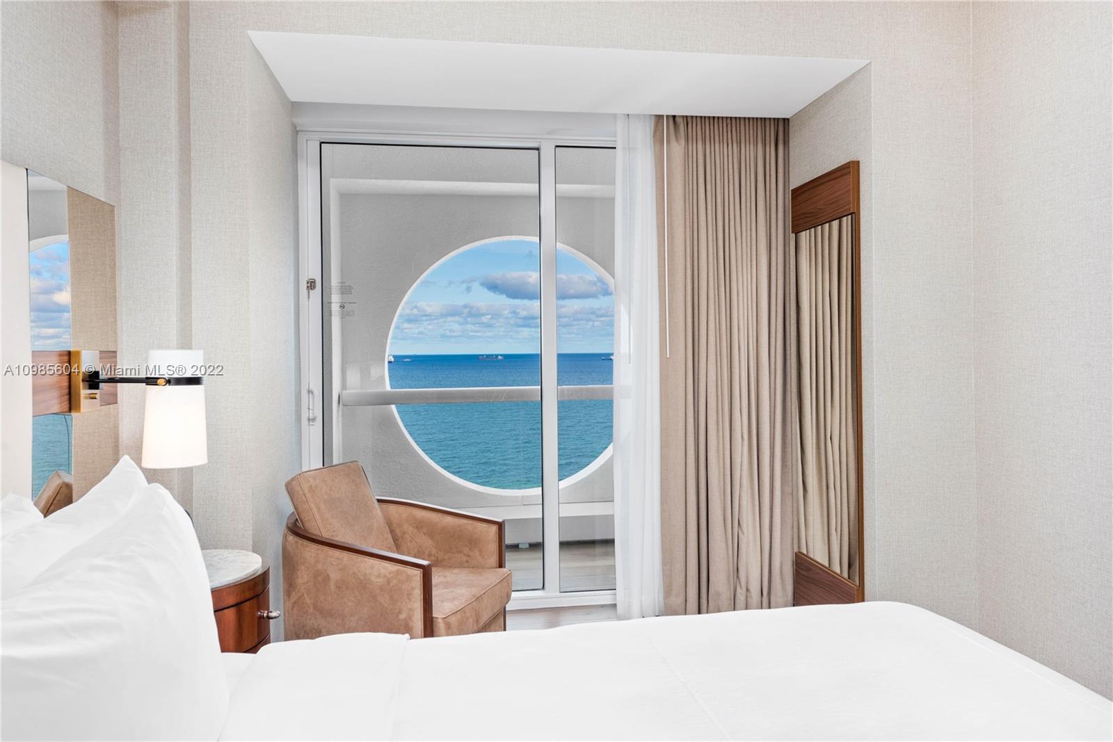 DIRECT OCEAN VIEWS, corner unit professionally designed & fully furnished. kitchen with sub-zero and wolf cooktop. Multiple balconies facing the ocean. Luxury resort living with top amenities including two restaurants, two bars, pool, valet, business center, and beach service. The hotel program will rent it out when you're not using it. Next to the new Four Seasons on Fort Lauderdale Beach. Virtual walkthrough video and apartment video available per request.
