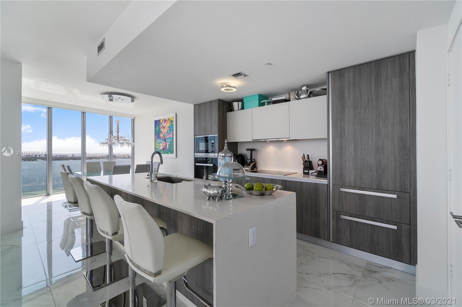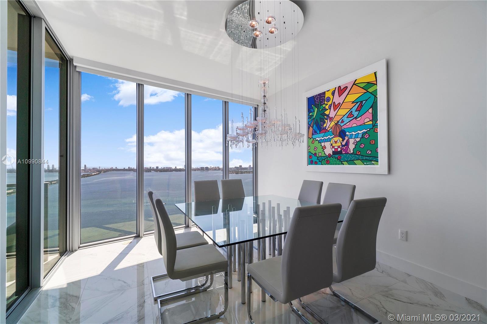 Two floor plans combined into one beautiful masterpiece, completely upgraded with magnificent views from the gorgeous Biscayne Bay Line from each room of this impressive corner unit. Very unique large condo with 4 bedrooms + den, 5 full bathrooms corner unit with 3,191 sq. ft of living space. You'll enter this magnificent apartment from a private keyed elevator. Marble and porcelain flooring throughout, custom lighting, built out closets, electric window treatments, Miele appliances, and two assigned parking spots. Centrally located in the Edgewater district close to highways, Design District, Wynwood, Miami Beach, Downtown and Brickell. Virtual Tour available.