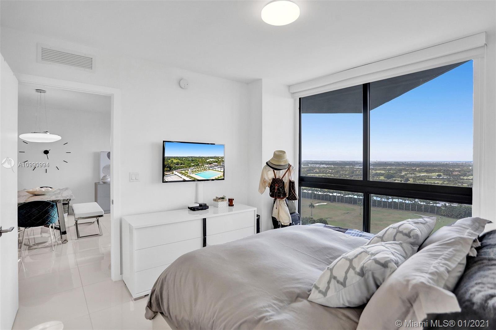 Unobstructed panoramic golf course views and skyline from every room of this high end condo in Downtown Doral. Blackout curtains, top of the line finishes, open concept kitchen with quartz countertops . Washer and dryer IN UNIT. Fantastic building amenities: pool, sauna, locker room, massage room, fitness center, cycling, valet. Be a part of the renaissance of Doral and live within walking distance of fine dining shopping and entertainment. The ultimate urban experience in the suburbs.