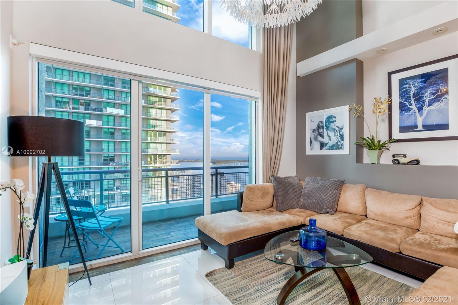 PRICE TO SELL WITH ALL FURNITURE INCLUDED!!! Spectacular 2 Story flow-thru Modern style home with sweeping East bay, water, Brickell views & breathtaking west sunset bay views from master. This home features double height ceilings, double balconies, marble floors, modern kitchen w/ sleek appliances and finishes, & walk in closets. Live in luxury building with all the amenities of a hotel such as state- of- the- art fitness center and spa, business center, 24 hour front desk concierge, security and valet services. Owner Motivated, priced to GO QUICK!! Walking Distance to Mary Brickell Village, Publix Shopping, Brickell City Center Metro Rail, Metro Mover and Nightlife!