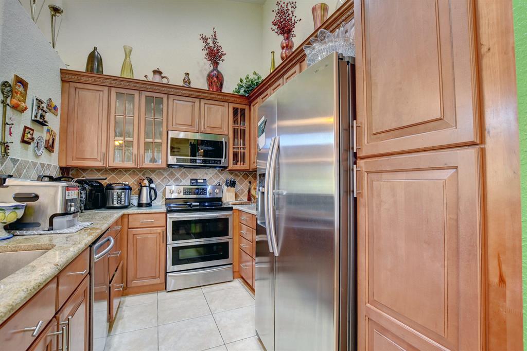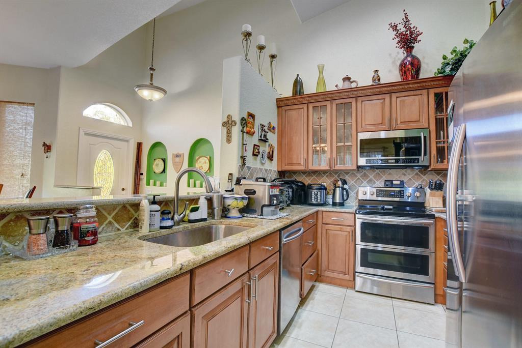This beautifully maintained light and bright 3/2 villa boasts high ceilings and large spacious rooms. The kitchen has been upgraded (2018) with detailed cabinetry, granite counters, and stainless appliances. The washer, dryer and A/C were replaced in 2020. This home sits on an oversized lot with plenty of room for entertaining. Cable, Lawn Care, and a manned gate are included in your monthly HOA dues. This community has many resort style amenities such as heated pool, fitness center, tennis, basketball, shuffleboard and billiards to name a few. There is a private resident access road that leads to a shopping plaza for your shopping and dining needs.
