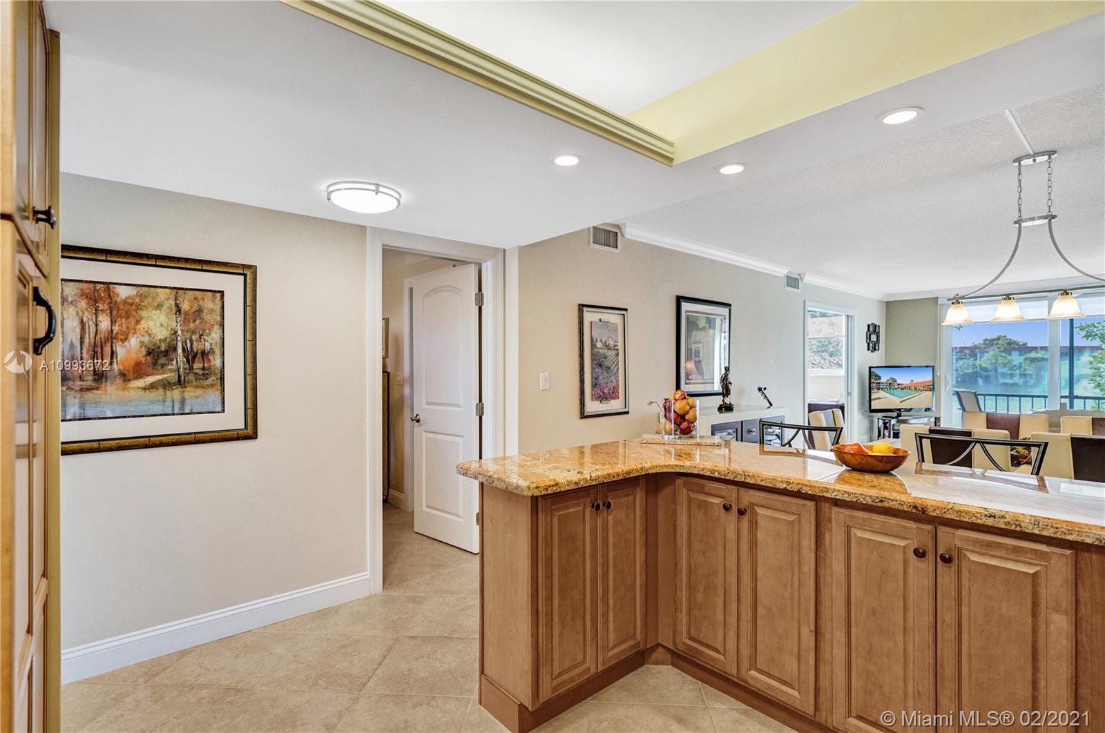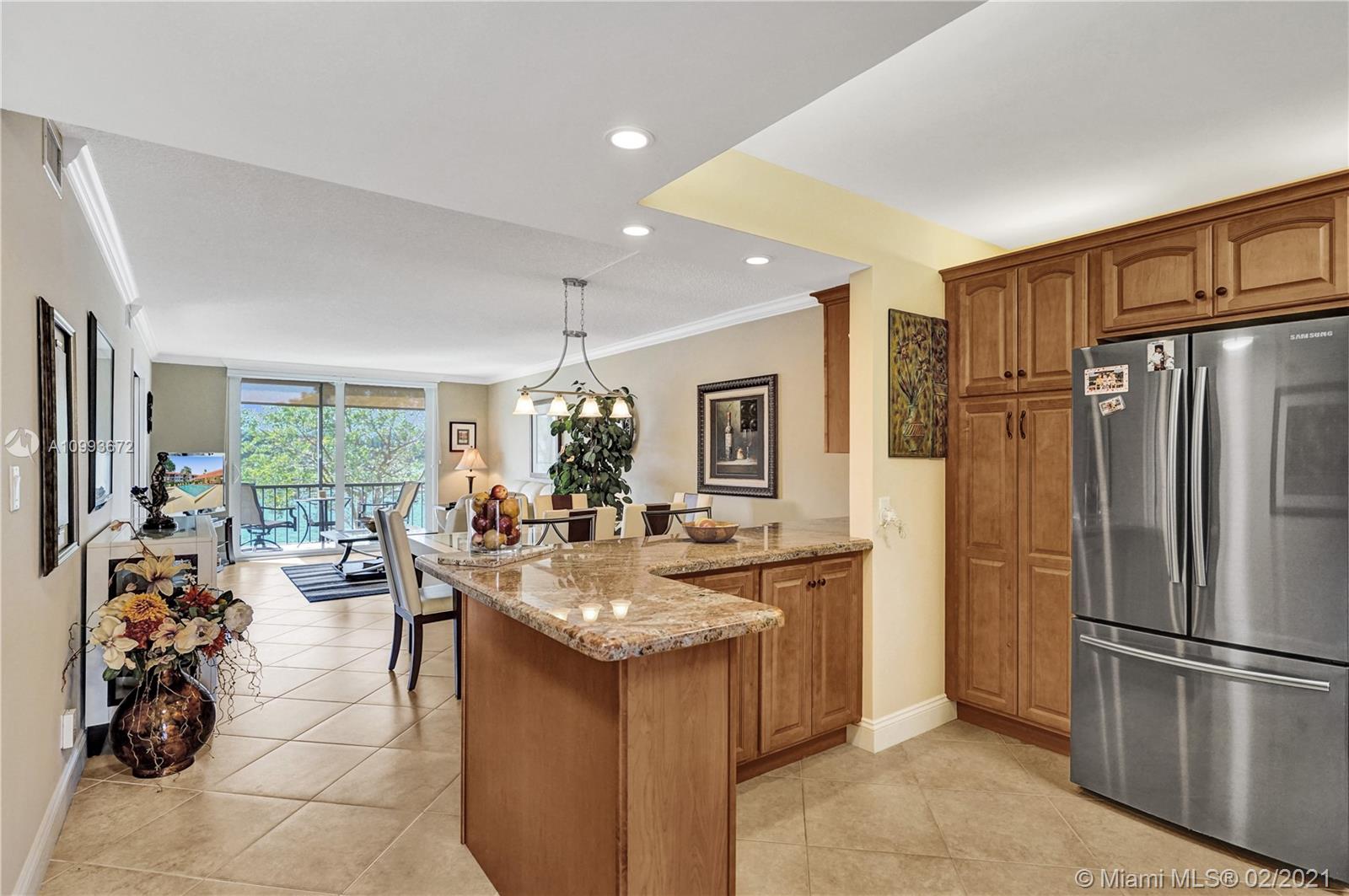 Enjoy the Hollybrook Lifestyle in this elegant fully remodeled 2 bed/2bath unit. This 55+ community is a golfers dream. The home features fully upgraded kitchen with Granite counter tops, Shaker cabinets and spacious pantries. Including Stainless Steel appliances, wine cooler, crown molding, beautifully upgraded bathrooms, Murphy bed in 2nd bedroom and much more. Enjoy the view in this lake front property with screen balcony and worry free, hurricane impact windows and doors. Amenities include FREE two 18 hole golf courses, heated swimming pools, state of the art fitness center, restaurant, club house, library, tennis, pickle ball, bocce ball, shuffleboard and more! This is pet friendly community with 24 hour security, manned gate. Do not miss the opportunity.