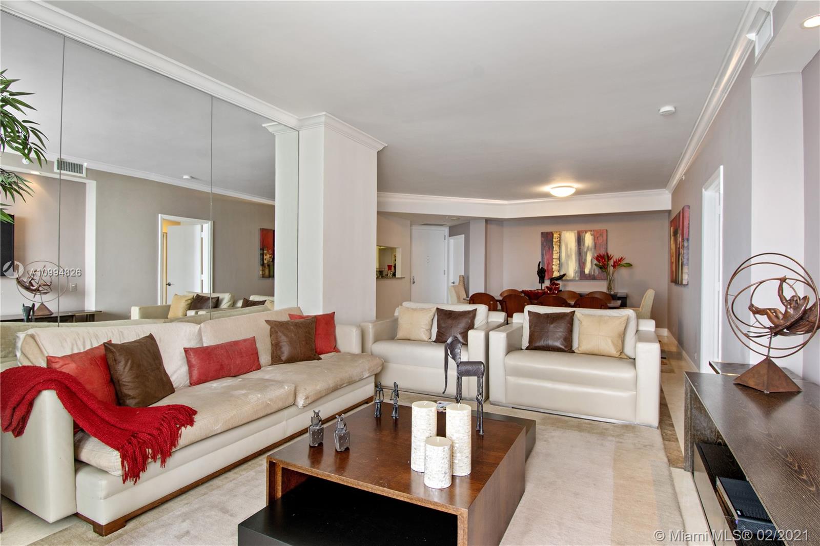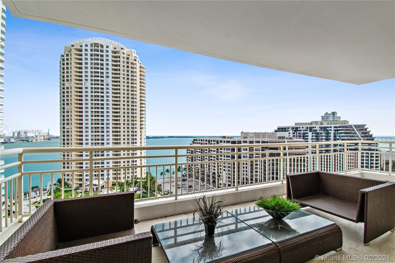 Located on gated Brickell Key, this fully furnished residence features 3 bedrooms and 2 1/2 baths. 1650 square feet of living space. Foyer entrance. (Den has been converted to a bedroom) Views of Biscayne Bay and the Ocean from most rooms. Marble floors in living areas, crown moldings, and wood floors in two of the bedrooms .Stainless steel appliances in the kitchen, granite countertops and pass-thru to dining area. Luxurious master bath. Walk-in closets. Large balcony. Building features, 24 hour doorman and concierge, large sparkling pool, hot tub, gym with top of the line equipment, executive center, barbecues, racquetball courts and children’s playground & valet parking. Hurricane shutters on all the windows. 2 parking spaces. The Island offers a bay walk, shopping, and a hotel.