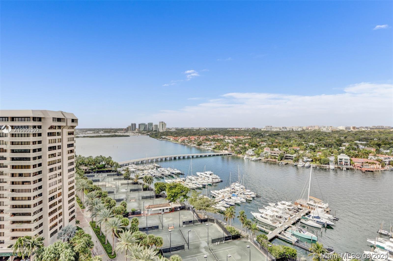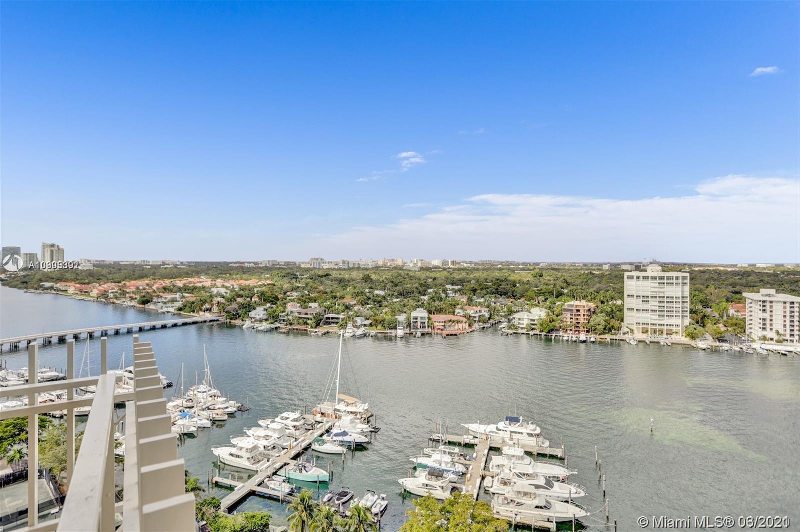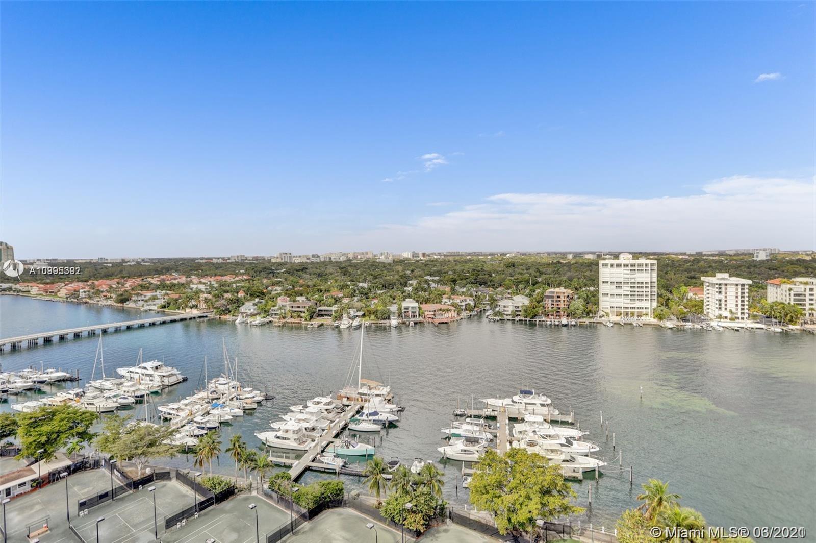 VIEWS! VIEWS! VIEWS! Spectacular high floor views of the bay, both Dinner Key and Grove Isle marinas, and the downtown Coconut Grove skyline from every room. This fabulous 3 bedrooms, 2.5 bathrooms home in the sky has 2,424 Sq. Ft. of interior living space, marble and wood floors throughout, updated bathrooms, recessed lighting and a spacious formal dining room. The kitchen has beautiful wood cabinets, granite countertops, stainless steel appliances and new Bosch front loading washer and dryer. The spacious master bedroom boasts his/her separate closets and its own en-suite bathroom with double sinks and a separate tub/shower. Enjoy incredible sunsets all year long from either of the 2 terraces and watch from your dining room every evening as the “The Magic City” lights up!