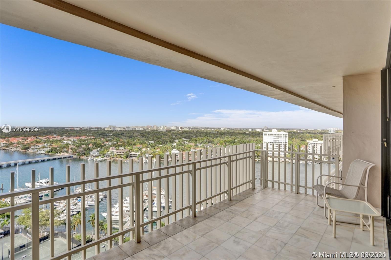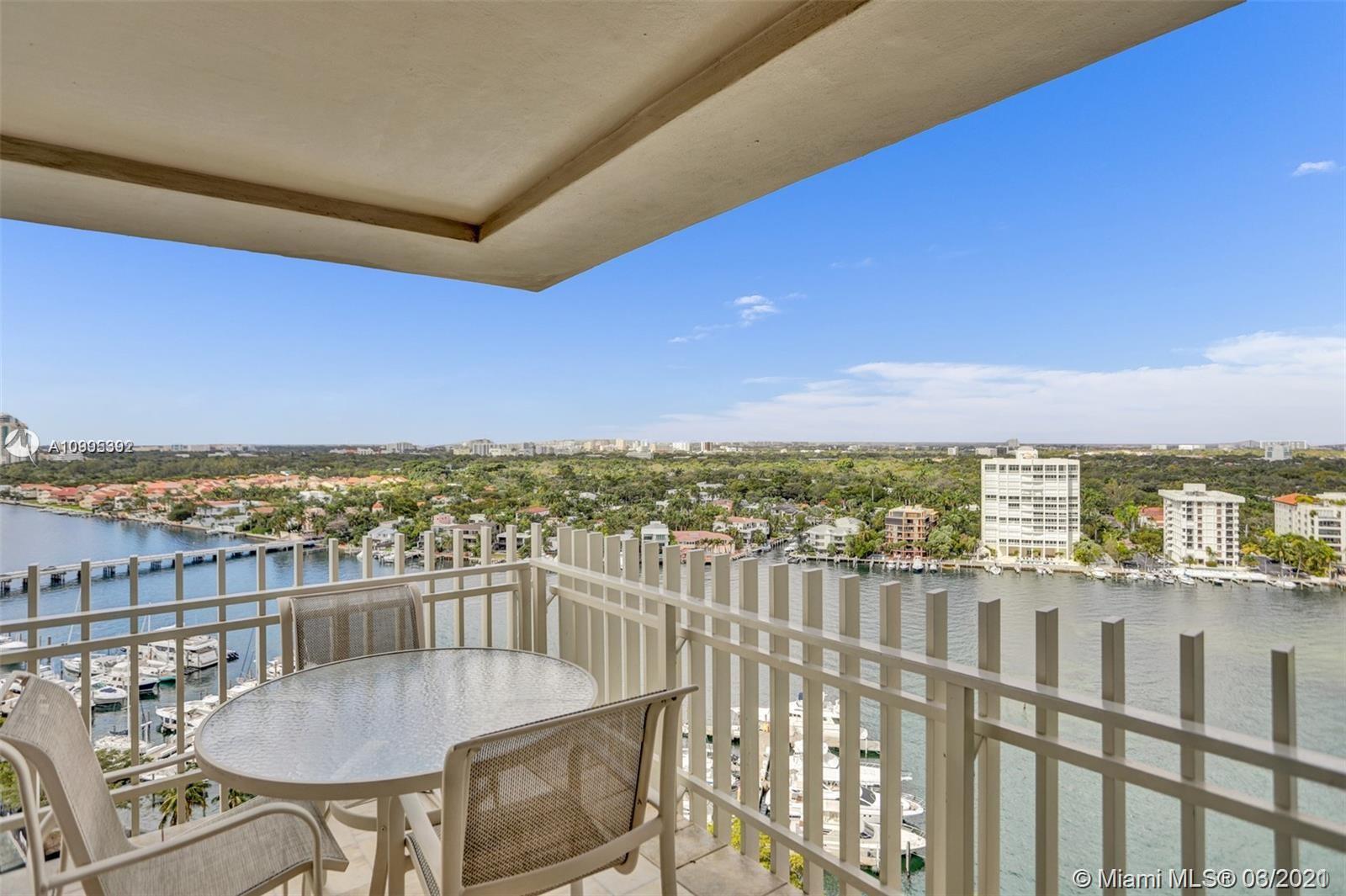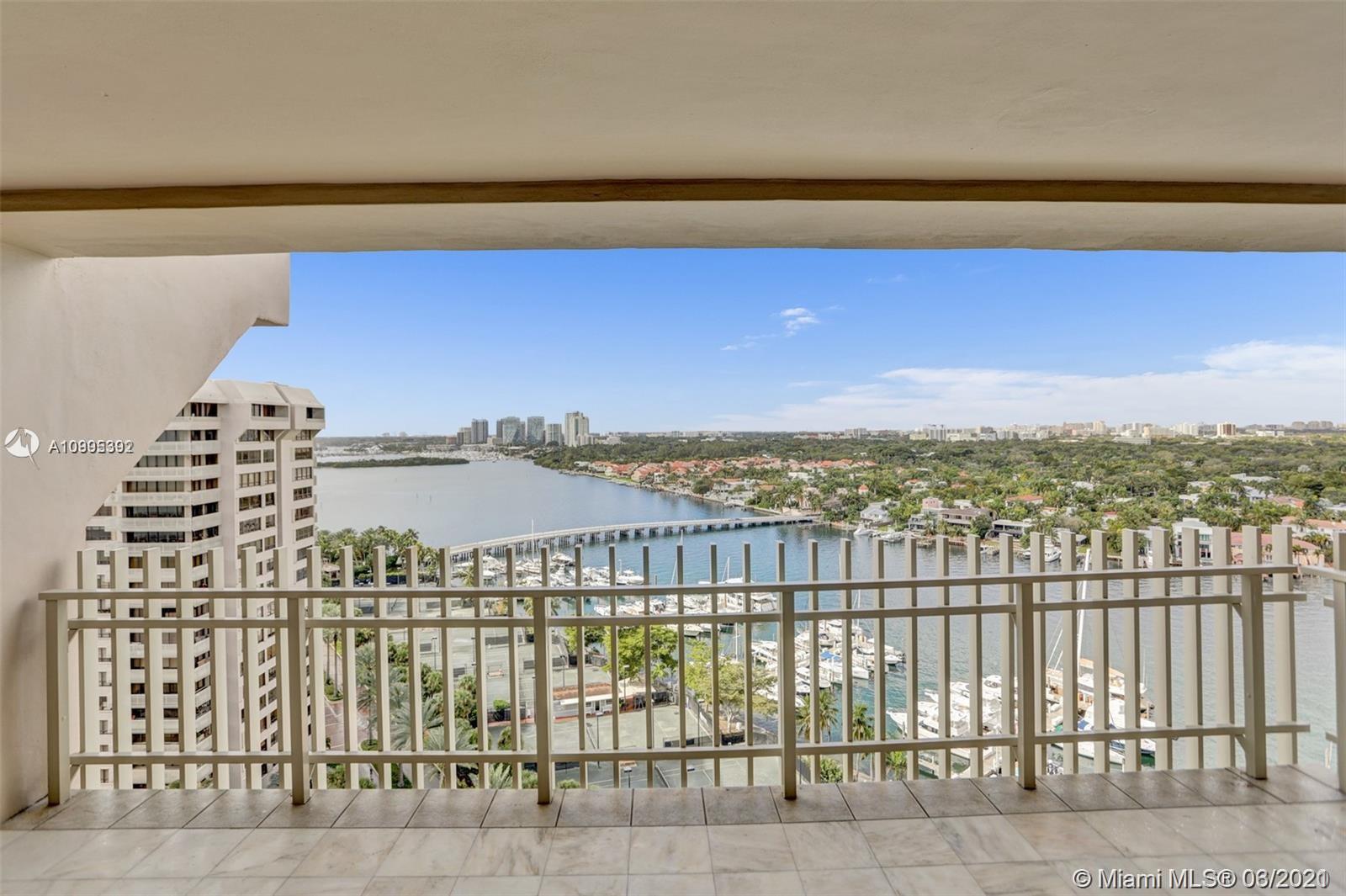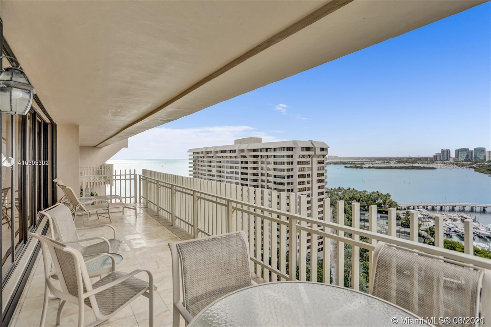 VIEWS! VIEWS! VIEWS! Spectacular high floor views of the bay, both Dinner Key and Grove Isle marinas, and the downtown Coconut Grove skyline from every room. This fabulous 3 bedrooms, 2.5 bathrooms home in the sky has 2,424 Sq. Ft. of interior living space, marble and wood floors throughout, updated bathrooms, recessed lighting and a spacious formal dining room. The kitchen has beautiful wood cabinets, granite countertops, stainless steel appliances and new Bosch front loading washer and dryer. The spacious master bedroom boasts his/her separate closets and its own en-suite bathroom with double sinks and a separate tub/shower. Enjoy incredible sunsets all year long from either of the 2 terraces and watch from your dining room every evening as the “The Magic City” lights up!
