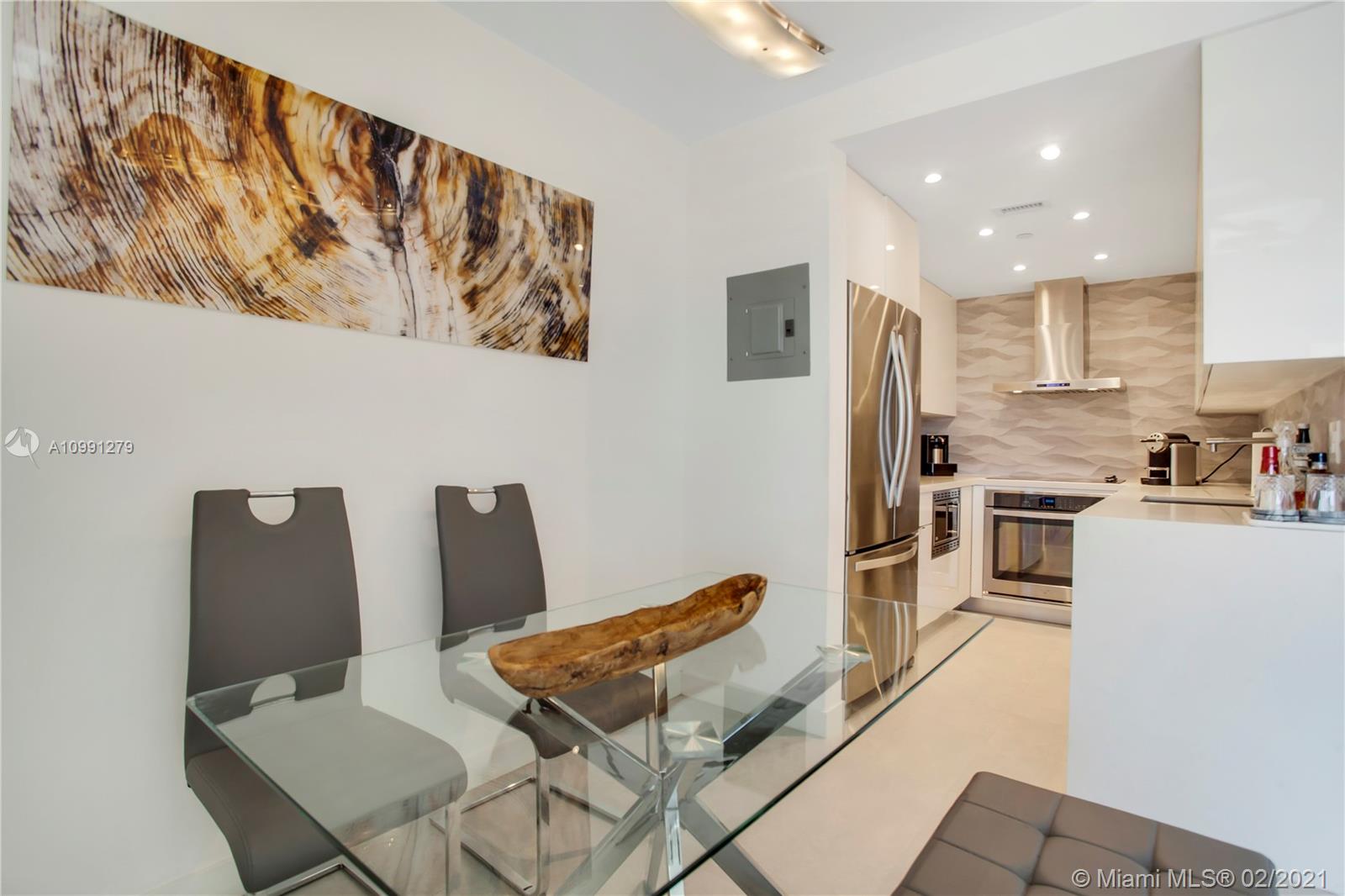 Completely renovated unit. Seller spared no expense and thought of everything! Junior 1 bedroom featuring large picture impact windows to allow maximum light. Dreamy modern kitchen w/ Gorgeous white custom Italian cabinetry, stainless steel appliances, lovely white quartz counters, modern gray backsplash, hood, wine cooler. White Custom push and soft close built in closets and cabinetry. Recessed lighting. Large custom built walk-in closet. Renovated bathroom with rain shower, gorgeous white modern pattern tile, glass encased. Unit comes with all electronics and furniture. This is a dream unit. Amenities include gorgeous bayside pool area with dramatic views of the bay and downtown Miami + state of the art fitness center. On site super market. Check out HD Video tour