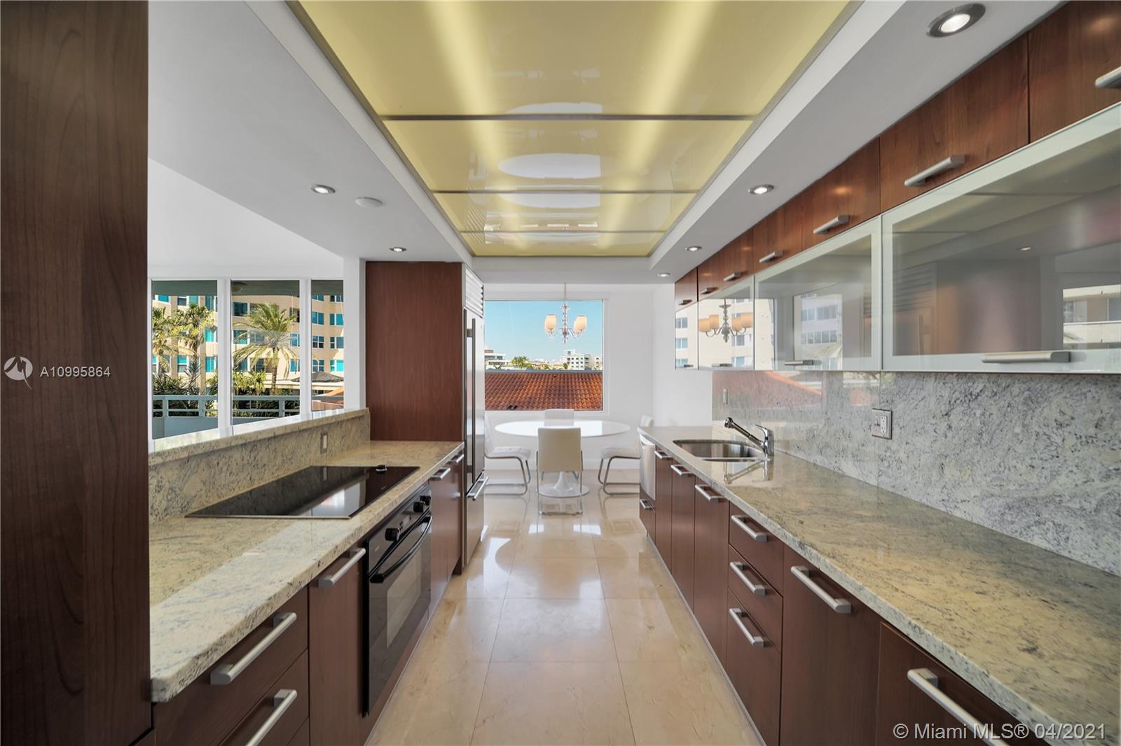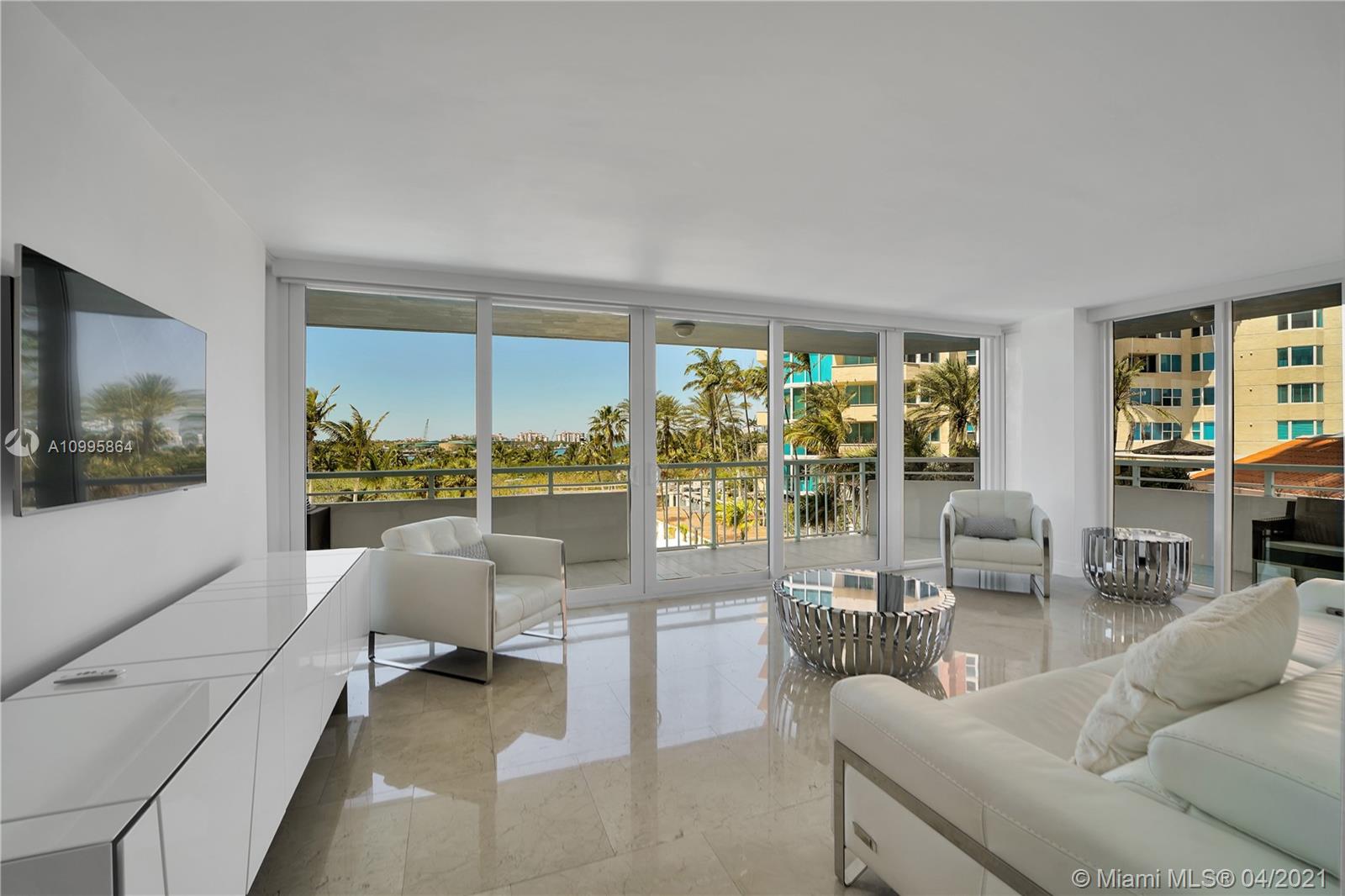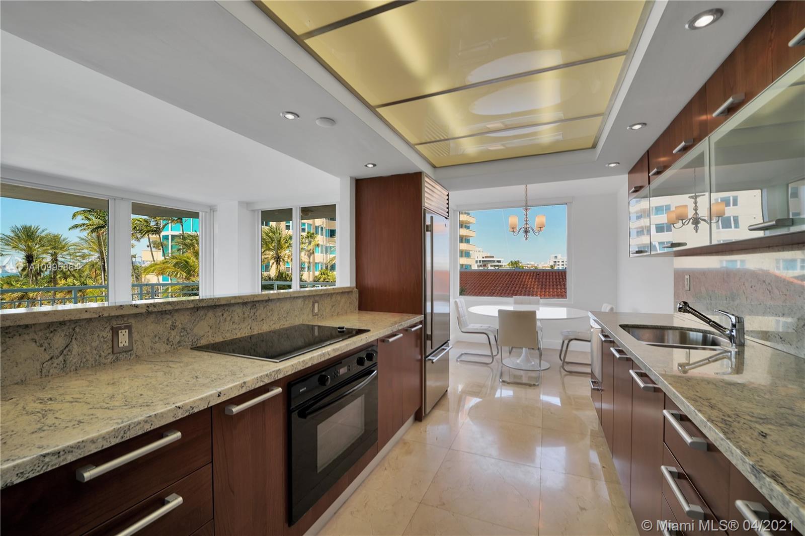 2 Bedroom 2 Bath corner unit. Renovation included IMPACT GLASS floor to ceiling windows in all rooms. Marble floors throughout living/dining area and ceramic "wood" floors in the bedrooms. Kitchen with breakfast nook has custom cabinetry with Sub Zero and Bosch appliances. Guest bathroom features walk in shower. Unit has a RARE balcony that wraps around the entire unit with access to all rooms. The building recently completed the renovation of the resident hallways. The pool and gym renovation are in the final phase of completion with an expected March completion date. All assessments have been paid. South views of Govt Cut and pool deck. Easy to show
