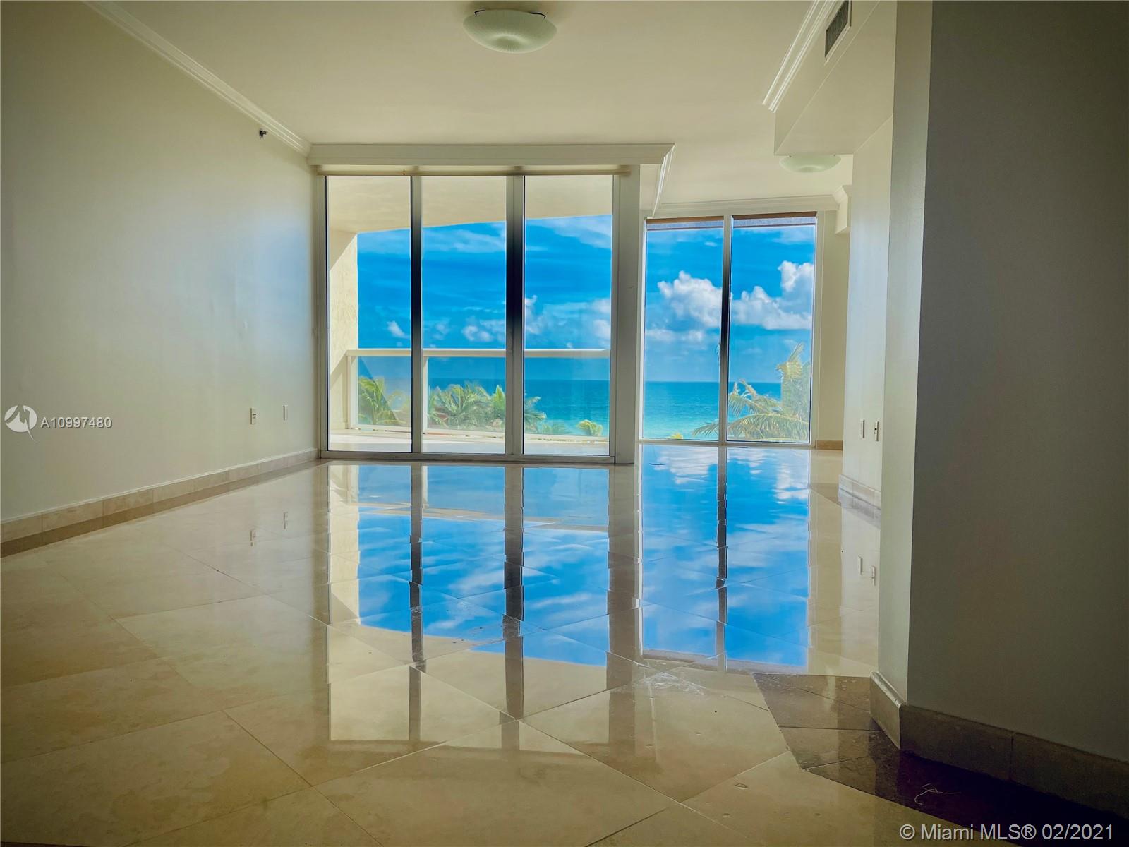 Direct ocean access from this bright 2 bedroom + Den, 2.5 bathrooms. Spectacular water views and marble floors, apt offers 2 balconies, 1 facing the ocean and other facing the city of Sunny Isles. Features include 5-star resort amenities: lighted tennis courts, fitness center, spa, rooftop with panoramic views and jacuzzi, beach service, restaurant, concierge, and valet services. If you're looking for an ocean view apt with a low maintenance fee this is the one!! No rental restrictions