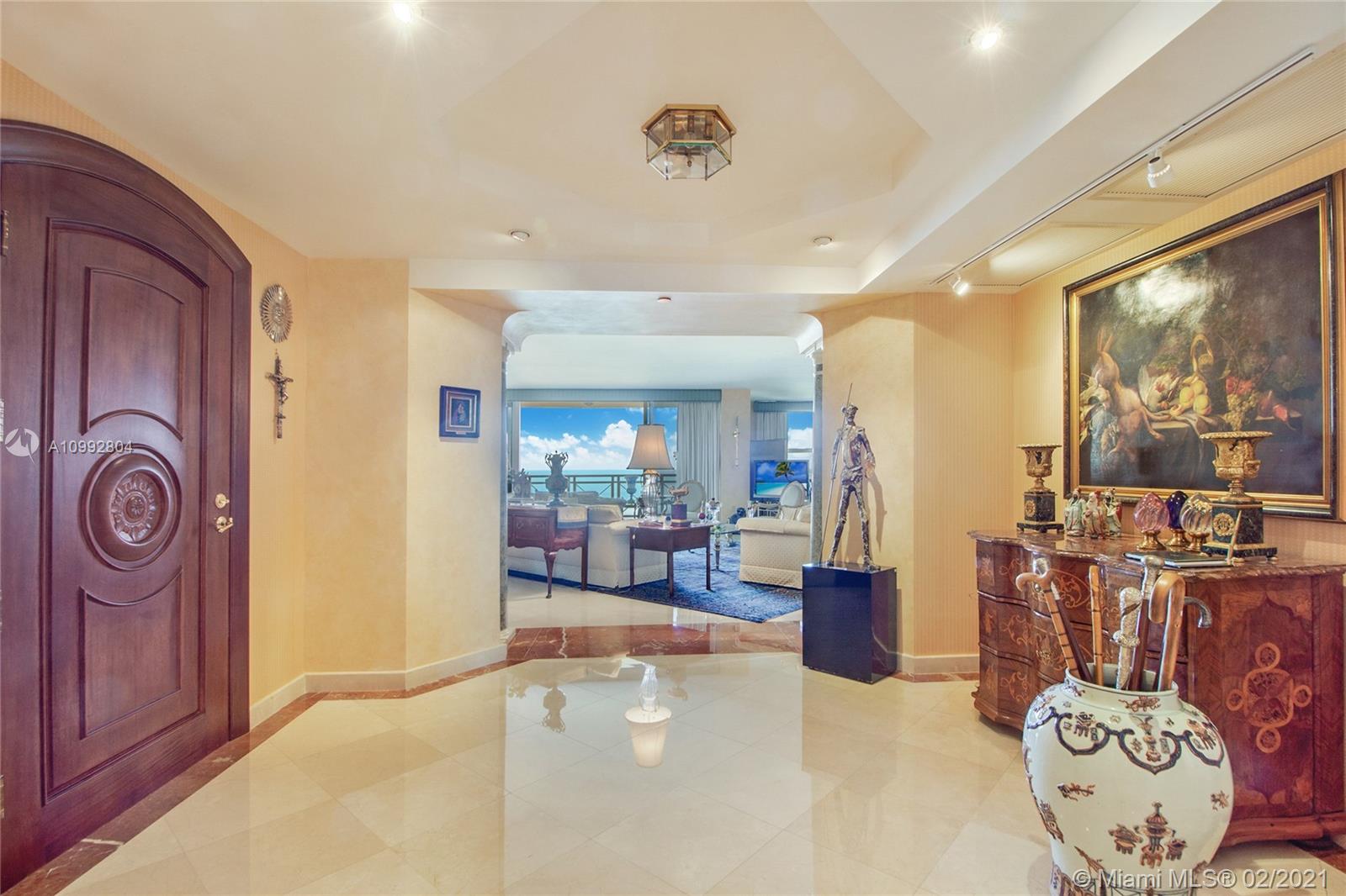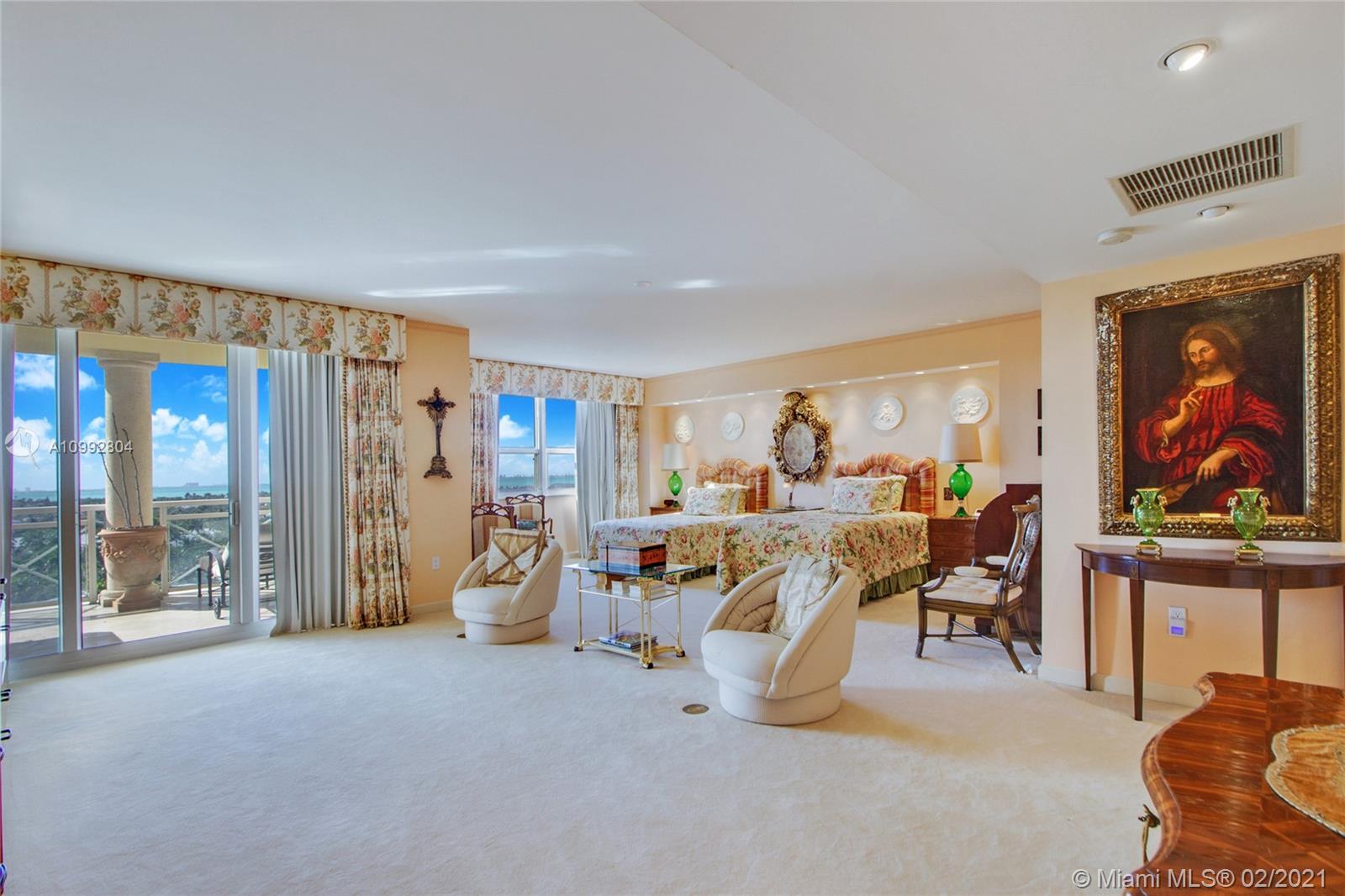 BEST LINE IN THE BUILDING!! Breathtaking views overlooking the ocean. A private elevator opens to a charming foyer, composed with a spacious family room, dining room, & breakfast area with a large, functional kitchen and a separate laundry room with a service entrance. Unit has 3,820 sq ft with 3 bedrooms and 3 1/2 baths, spacious master bedroom with his/her walk-in closets, The master bathroom is pure luxury, made with beautiful marble. This palace in the sky has two balconies facing east and south/West. Valet parking, 24hr concierge, a private beach access & prime amenities. Live in the gem of Key Biscayne!