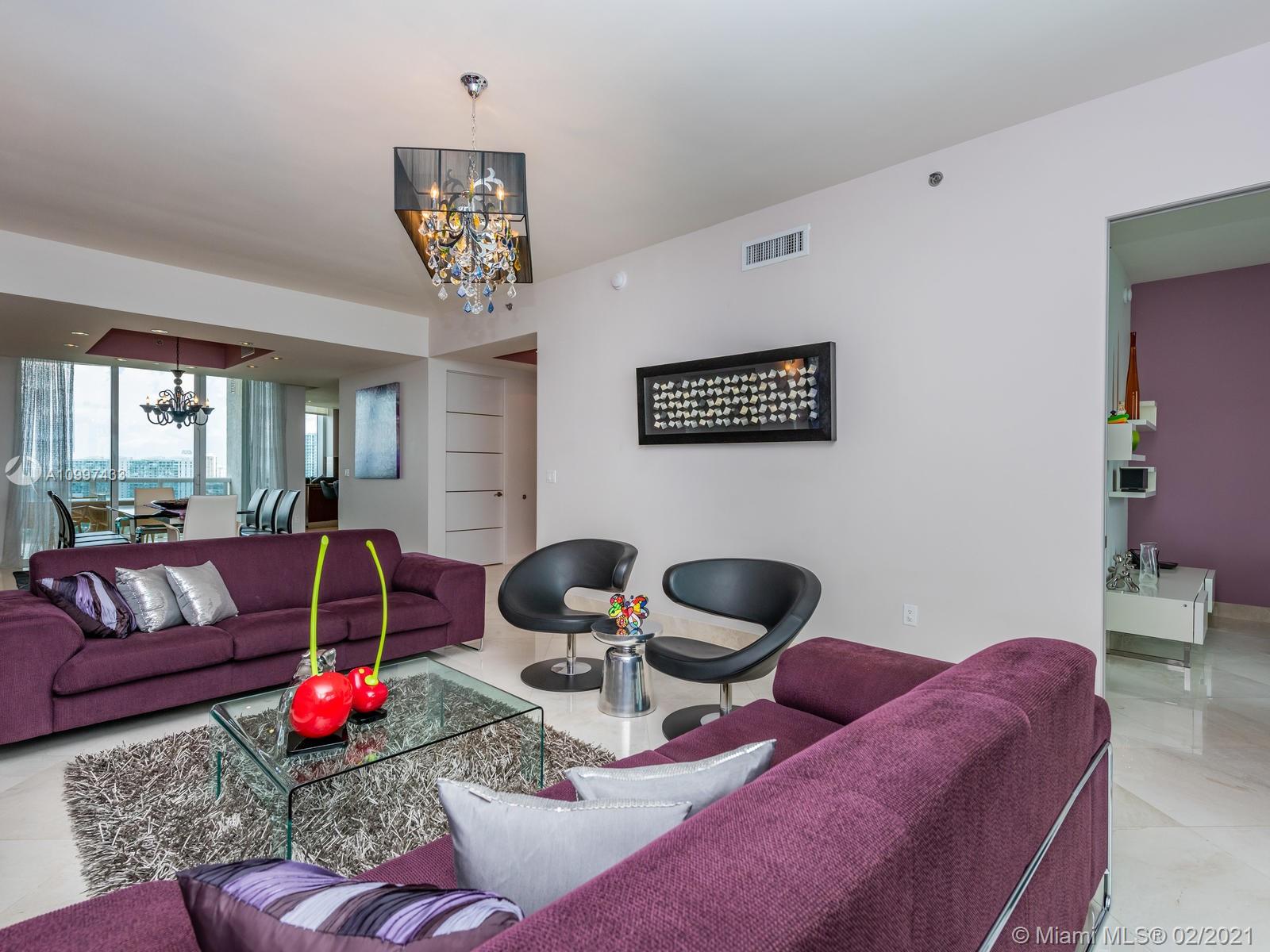 Enter through your private elevator to this beautiful fully furnished, interior decorated 3 bed/3.5 baths. Breathtaking panoramic views of the Atlantic Ocean and the Intracoastal waterways from every room. Enjoy the modern decorated living and dining room that opens to balconies on both sides. Ample Italian kitchen, granite countertops, high-end appliances, breakfast area, and additional access to the property. Designer details continue to the master bedroom with a sitting area, walk-in closets, and ample beautiful bathroom. Additional bedrooms with all the comforts needed. Amenities with 24-hour concierge and valet parking, fitness center, spa, beachfront cabanas, covered parking, heated swimming pool, and much more with the white sandy ocean frontage of the amazing Sunny Isle Beach.