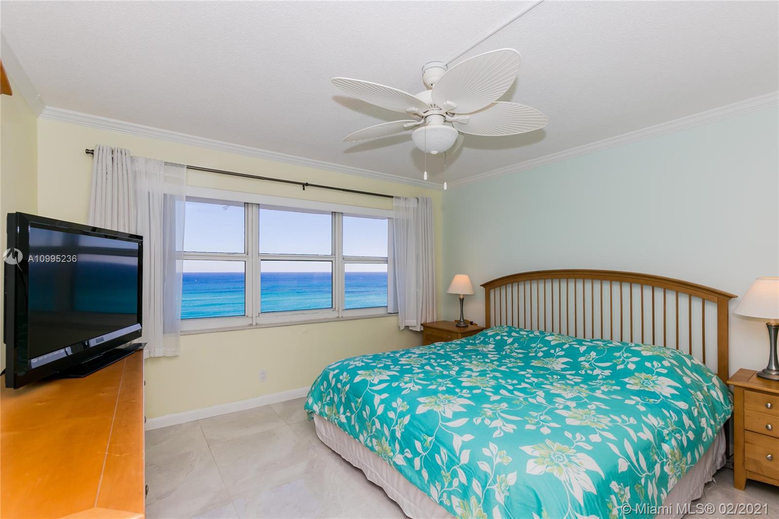 Run, dont walk for this Gorgeously modernized 2/2 corner unit with a breathtaking unobstructed direct ocean view. This home was updated and remodeled only 2 years ago including new kitchen and bathrooms, 24" porcelain tile floors throughout, quartz countertops, sills, and vanities, stainless steel appliances, crown molding, impact glass windows and sliders, new AC, new lighting features, new interior doors, newly furnished..and more. Sold turn-key with furniture included and only the personal items excluded. New impact glass balconies (already paid for).