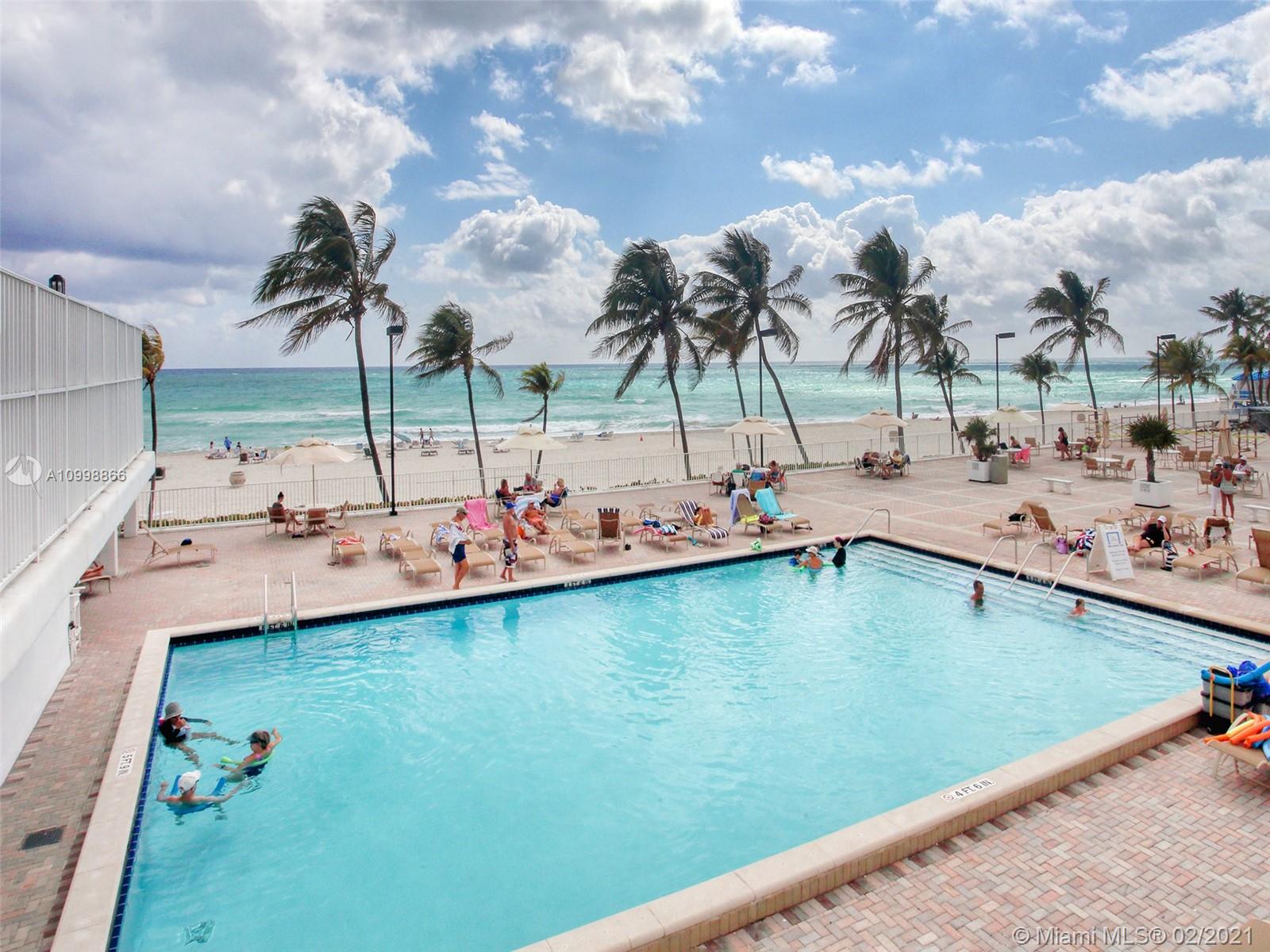 PRICED TO SELL 1 bedroom 1.5 bathrooms Great Condo to enjoy life in South Florida best location on Hollywood beach 2 pools, restaurant, gym, steps from the beach, impact windows, shutters, electric shades, AC 1+yr old, appliances few yrs old, customs made bedroom owner will include furniture and sound system. Laundry room and cameras on each floor, 8 units per floor, bike-room storage, few minutes from Ft Lauderdale airport, Aventura Mall, great restaurants, shopping coffee shops walking distance to Margarita Villages and Hollywood Broadwalk 40yrs inspection done. The unit has 1000sqft great investment can be rented right away easy assn. approval community has small monthly assessment until Dec 31st, 2021 with full price offer owner is willing to negotiate. Easily to show call o text agent