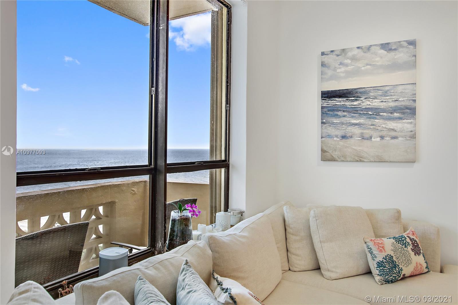 Fully Renovated and Turn Key with a Private Garage space, 10 foot ceilings, CAT-5 Wired, Two Bedroom+Den Penthouse Apartment in Bal Harbour, Enjoy Oceanfront living & the tranquility of sunrises & sunsets from the privacy of your balcony. This penthouse was gut renovated with the finest attention to details, it has lots of natural light & gorgeous views of the Atlantic Ocean & Biscayne Bay. The Plaza is located in the prestigious and secluded Bal Harbour community. Just steps from upscale Bal Harbour Shops, world-class hotels, children's park, places of worship and top restaurants. Great gym, valet, pool, beach service, and access to a jog/bike path running parallel to the ocean.