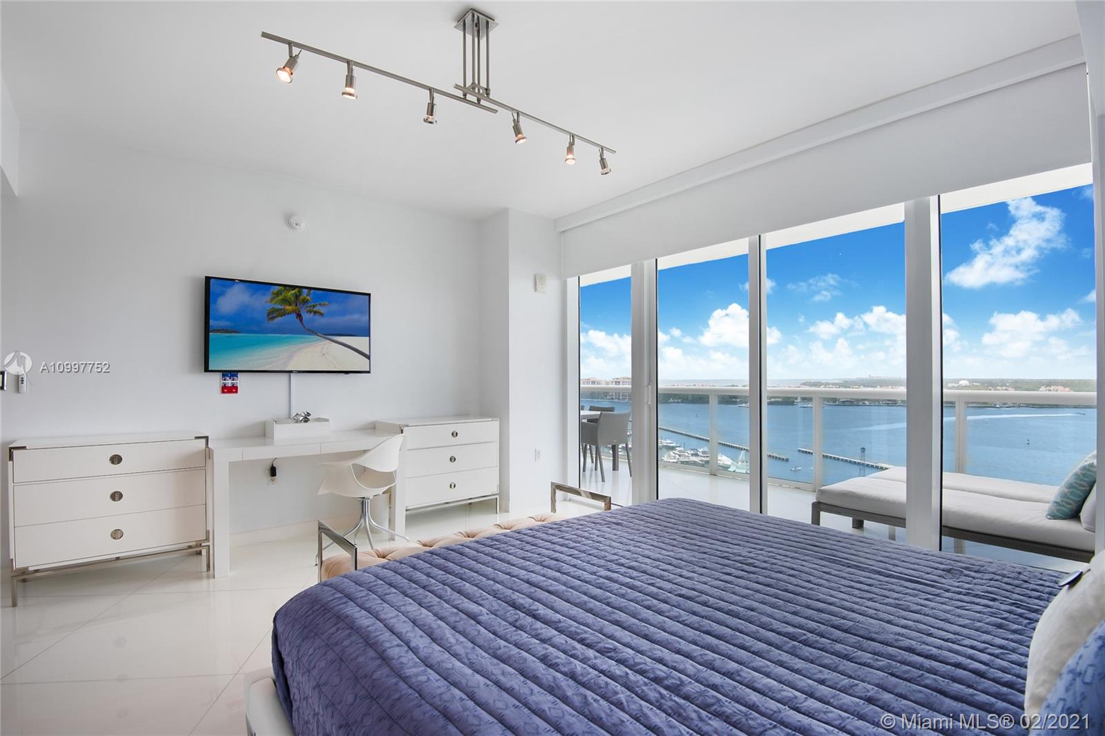 One of the few and most-desired, direct bay-front apartments at the Murano Grande in South Beach. This 2/2 floorplan is impeccably designed and fully renovated with bright, white surfaces, white "glass" flooring, upgraded bathrooms, closets and more. Direct water views from every room. It has an open kitchen plan with Subzero and Miele appliances, a sit up bar, living and dining area and more. The expansive 336 sqft (31.2 m²) terrace offers significant additional living space and stunning views of the Miami Beach Marina, Fisher Island, Downtown Miami and Biscayne Bay. Murano Grande provides superfast Internet, HD television and three TIVO units as part of your maintenance. Amenities include an onsite restaurant, tennis court, an extensive gym and world class pool with towel service.