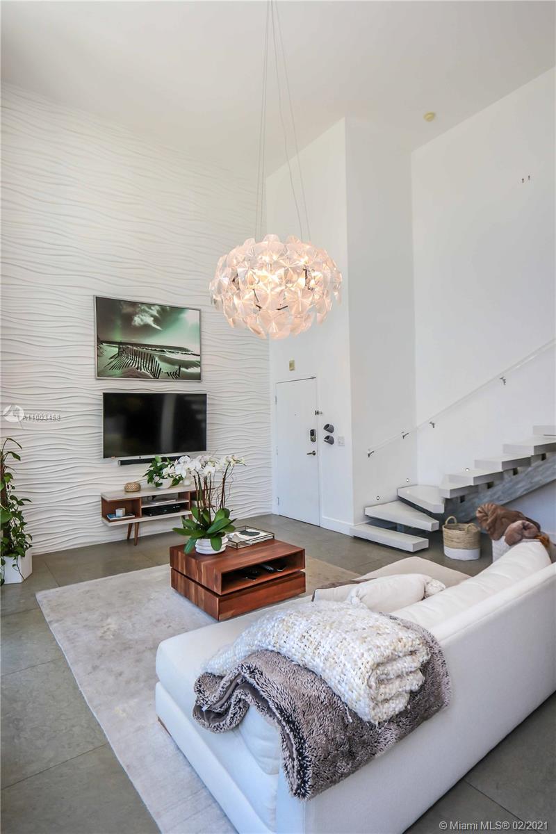 Stunning 2-story loft, fully renovated with 22 foot height ceilings. This unit at the boutique Alliage Condo offers 2 beds, 2 baths, 1,166 SqFt, stone floors throughout, two expansive balconies, floating staircase, fully renovated bathrooms, hurricane impact windows, built out walk-in closets, stainless steel appliances, automatic shades and TWO assigned parking spaces. Very bright with natural light shining through the double height windows. With only 12 residences in the building, Alliage Condominium is an ideal alternative to single family home. This boutique building also offers a private rooftop pool, covered garage parking, gated lobby entrance and best of all it is located a short walk away from Lincoln Road and the best restaurants, cafe's and shopping Miami Beach has to offer.