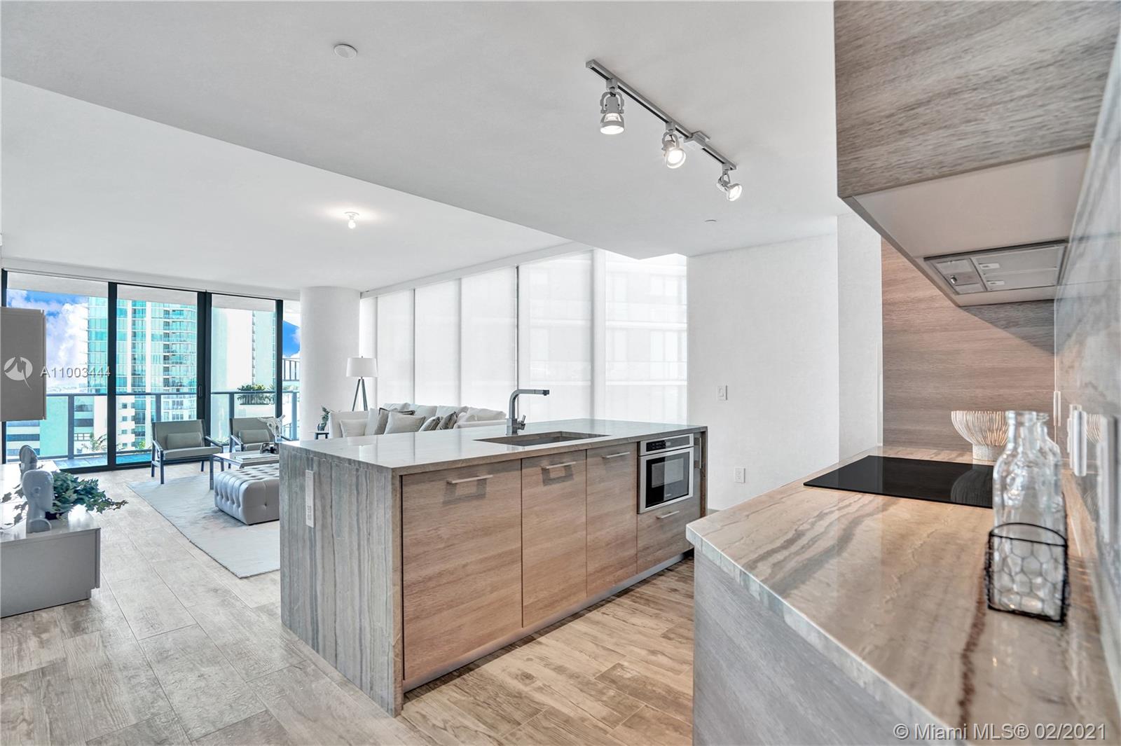 More than $140K in upgrades! Move In Ready!This CORNER WATER FRONT unit was designed for the most exquisite tastes. 3 min away from Design District. Designed by Arquitectonia offering breathtaking views of Biscayne Bay. All surrounding the biggest amenities in Miami. Offering a stunning private foyer, 9’ ft ceiling, a lot of natural light. Upgrades: wood look porcelain floors, waterfall marble countertops and backsplash, Spanish wood doors, custom walk in closets, electric shades and blackouts, wall papers and open concept master bath. Gourmet Italkraft custom kitchen cabinets, Bosh Appliances and Sub-zero refrigerator. Art sold separately. THE UNIT IS READY JUST FOR YOU. ENJOY THE BEST LIFE STYLE.. Bayfront Private Beach Club with Amara Restaurant by Award-Winning Chef Michael Swchartz.