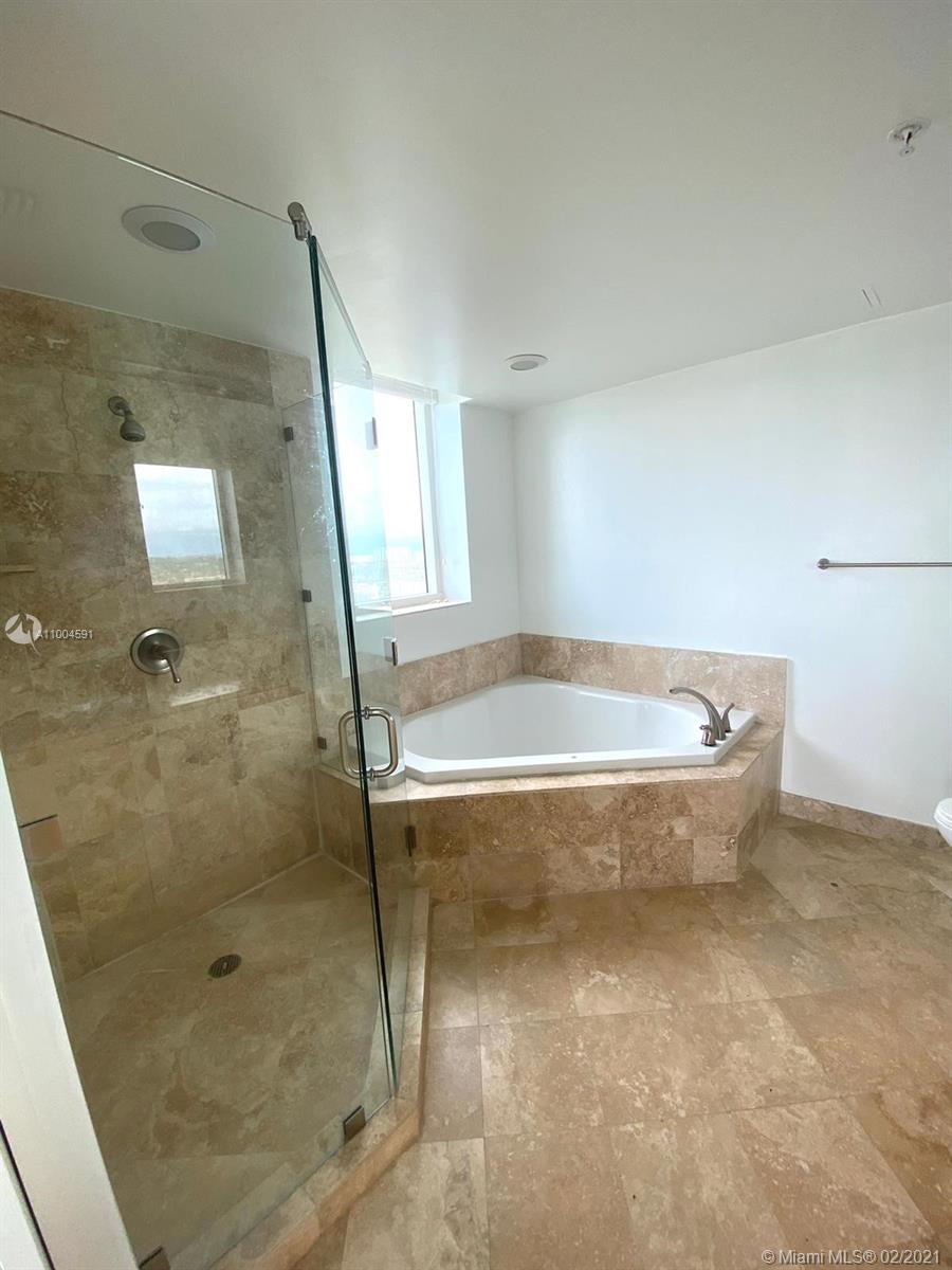 Spacious 21 st Floor corner condo at the heart of Hallandale, beautiful wraparound balcony with great view of the city and golf course, cozy updated 3 bedrooms/2 bath, split floor plan, porcelain floors throughout, open concept kitchen, stainless steel appliances, laundry room inside the unit, Master Bedroom with separate bath tub & shower with 2 sinks. Enjoy amenities: heated pool, gym, billianrd room, tennis, bar, sauna, conference room, security. Close to Beach, restaurants and other facilities and stores. Unit is vacant.