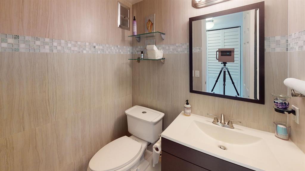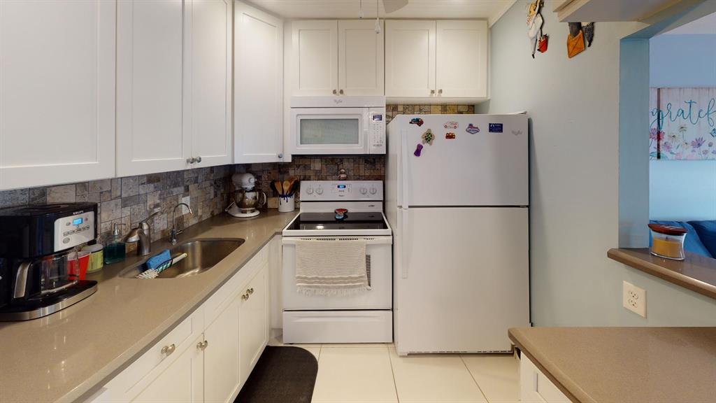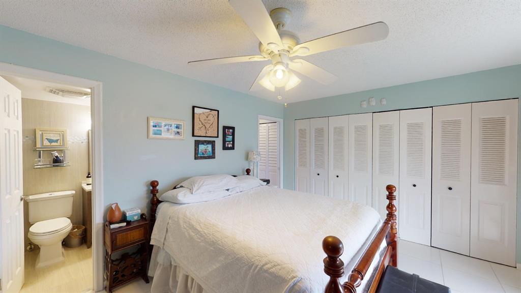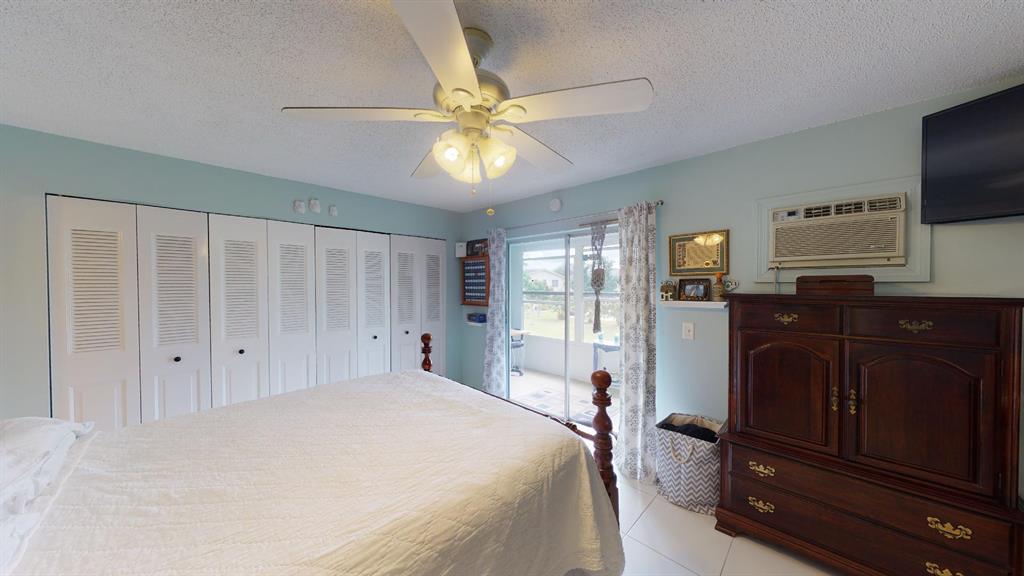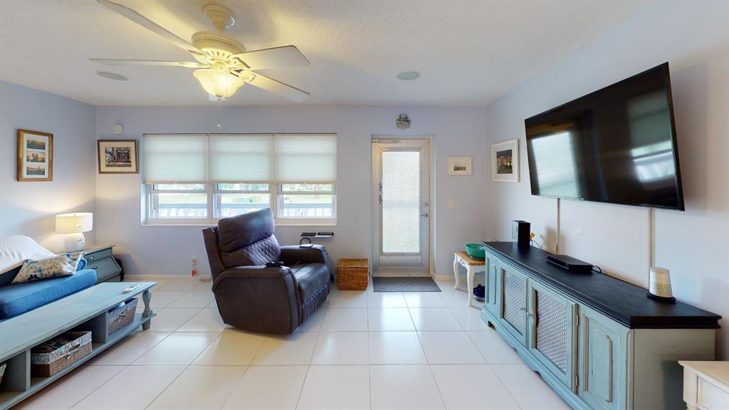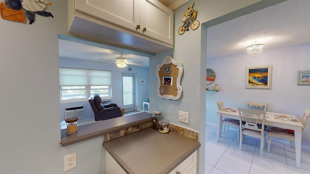 Located in Century Village a 55+ resort-style community is this beautiful 2nd floor one bedroom with one and one half baths condo. This condo features all tile floors, updated kitchen and baths with a walk-in shower, 2 A/Cs, 6-panel doors, freshly painted, and ceiling fans in all rooms. Kitchen has all wood cabinets, backsplash, quartz countertops, newer white appliances, a six-stage RO water filter and an on-demand hot water heater.Impact windows in front. sliding glass doors in bedroom open to screened lanai with a fan and storage closet. You're only steps away from the pool. Building has new anti-slip walkways and roof replaced this year, laundry on both floors, and a large open patio for enjoying the outdoors. No pets and no rentals. Close to turnpike and 95