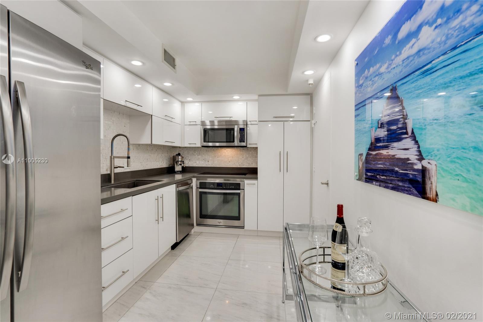 Enjoy breathtaking sun rises in this condo located in beautiful Hollywood Beach. This beautiful 2 bedrooms unit has breathtaking direct ocean views from the living room, dining room and both bedrooms. The unit was a full gut renovation using the highest quality materials. The unit boasts stunning white marble floors throughout, high gloss cabinets in the kitchen as well as quartz countertops, beautiful bathroom fixtures and so much more. There are over $100,000.00 in upgrades. This residence is ideal for personal use, or a fantastic investment property as the building permits short term rentals. The complex boasts 2 pools, 2 gyms, cafe, movie theater, valet parking, game room and a yoga studio. Assoc. Fee's include A/C, digital cable and high-speed fiber internet.