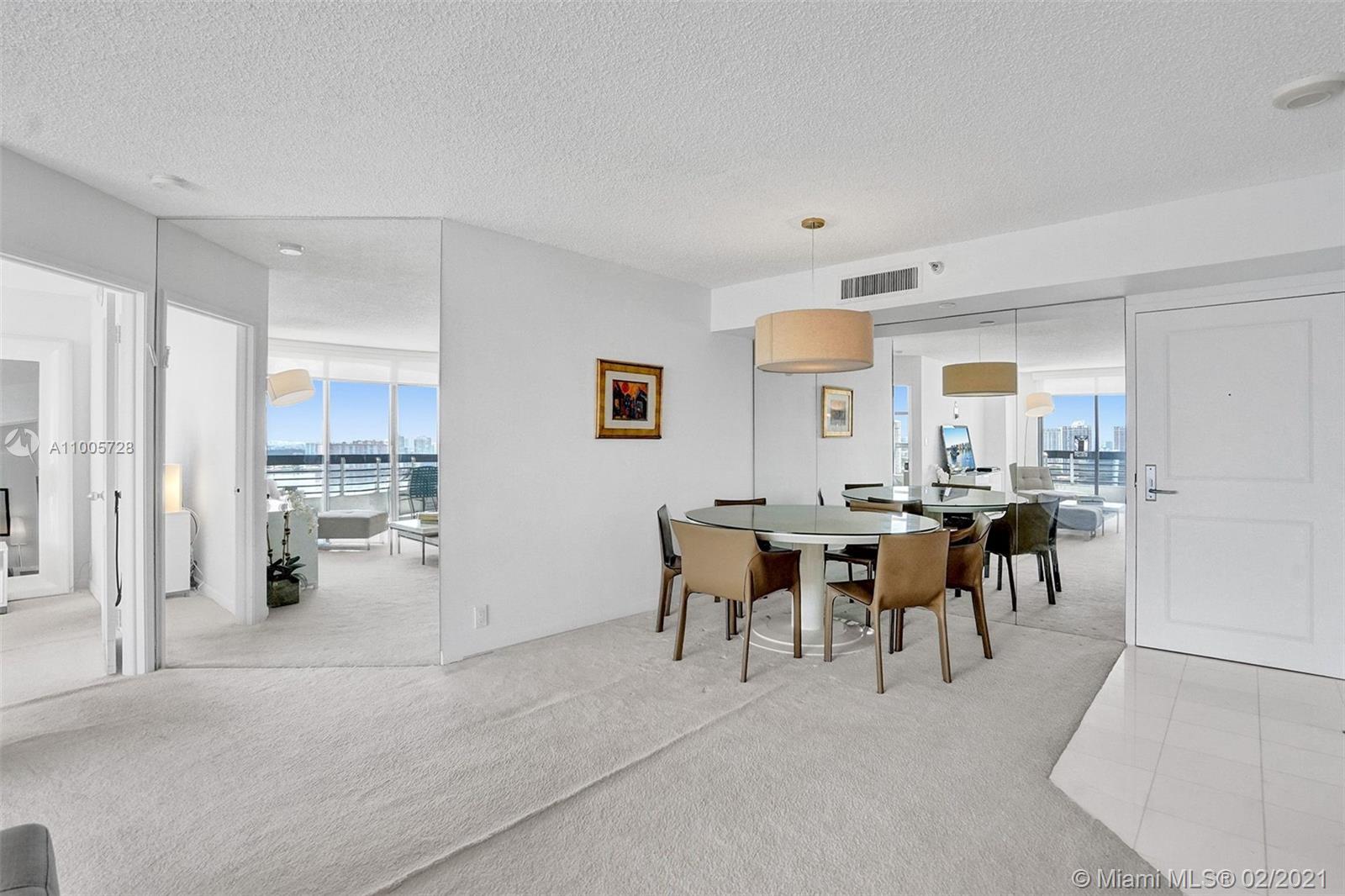 Priced to Sell: Enjoy FOREVVER VIEWS to the south all the way to downtown Miami, the ocean, the bay, Aventura and Intracoastal. Light and bright. Ensuite washer and dryer, split floor plan, open kitchen. Impeccably maintained. Because unit is in the curve of the building (first unit from elevators), there are no birds, and no wind. Enjoy sitting on your balcony undisturbed for hours on end. Aventura is in the NE quadrant of Miami-Dade. It is one of the most coveted zip codes in Florida, with A plus public and charter schools, world-renown shopping, restaurants and soon, the Bright Line, which will zip you downtown in 15 minutes. SOME FURNITURE NEGOTIABLE. No assessments, pets allowed, one assigned covered parking space, 2nd space avail. to rent $33/M $2,000, in reserves.