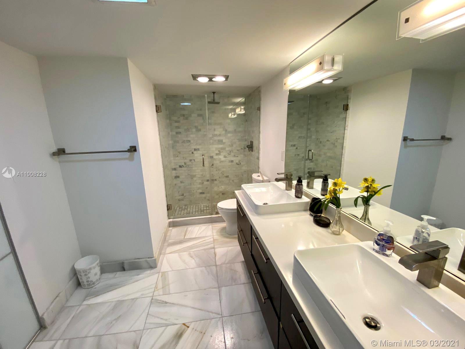Location Location!! This gorgeous apartment located in Sunny Isles Beach, right in front of the beach. Completely renovated and spacious 2 bedrooms and 2 bathrooms apartment at Arlen House East. Glass tile Porcelain crystal white flooring throughout the apartment. Stainless steel appliances, quartz in the bathrooms and Kitchen, electric curtains in the living room.