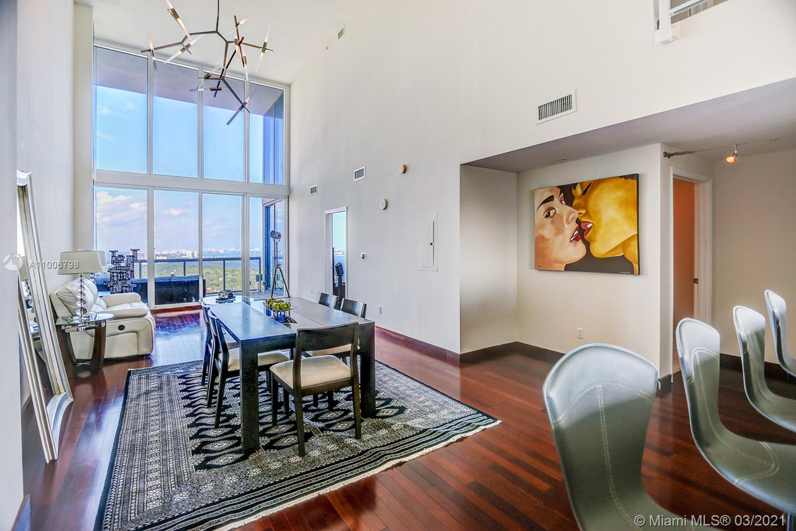 In the heart of Miami's most coveted neighborhood sits the most exquisite, rare and desirable 2 floor Penthouse, the Crown Jewel at the Blue Condominium, where penthouses are rarely offered for sale. A must see, the PH is a true “Petit Palais” in the Sky, with breathtaking views of the Bay and Downtown. As you enter the foyer you encounter the social area with ceilings soaring an unbelievable height above 20 feet with floor-to-ceiling windows and a modern Italian chef’s open kitchen with amazing views of Downtown Miami. Enjoy the great and renovated amenities Blue Condo has to offer. Located in Edgewater, this PH is within walking distance of the famous Miami Design District, Midtown, Wynwood, and just a 5 minute ride to Miami Beach. This unit comes with 3 parking spaces + storage.