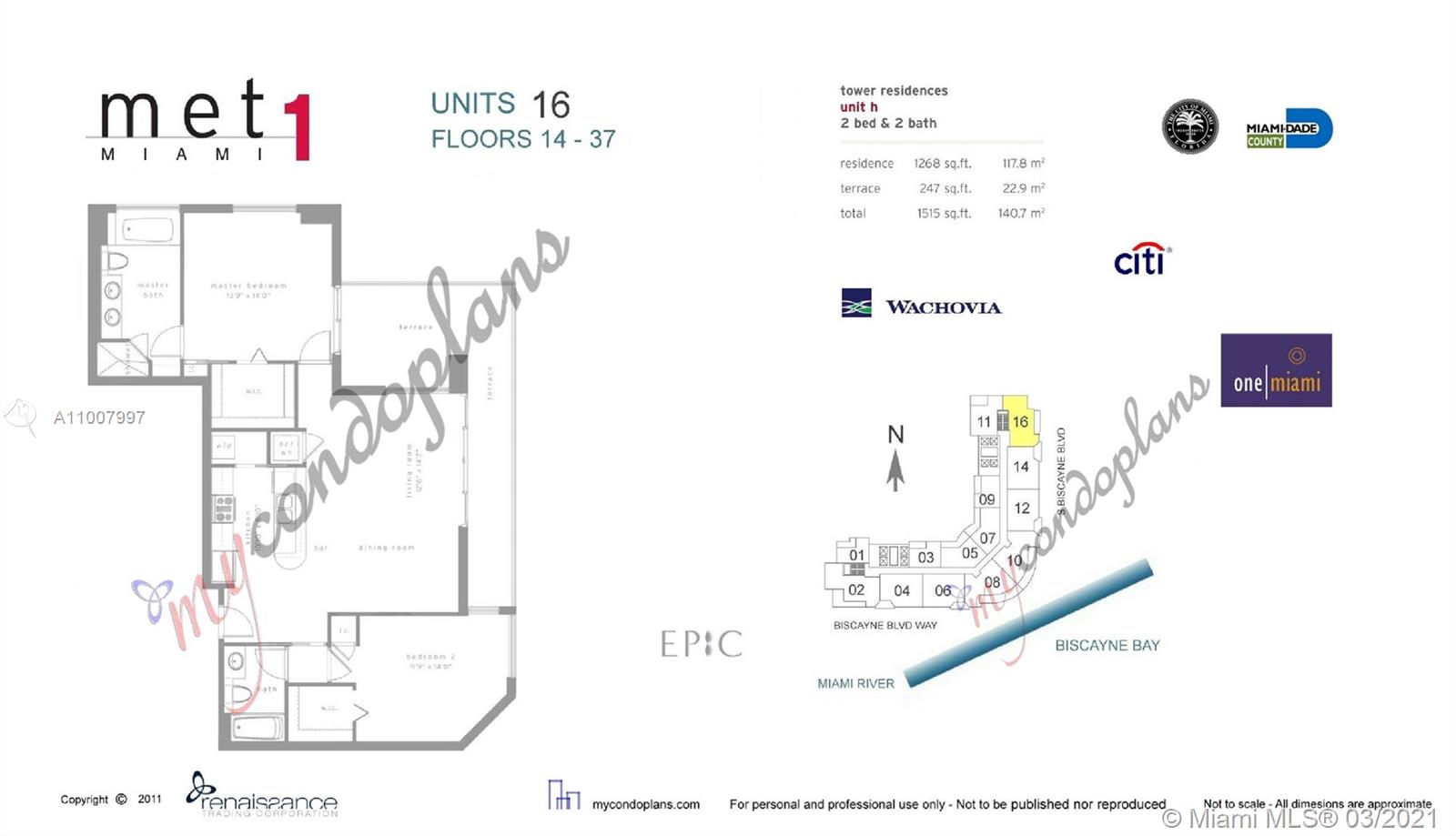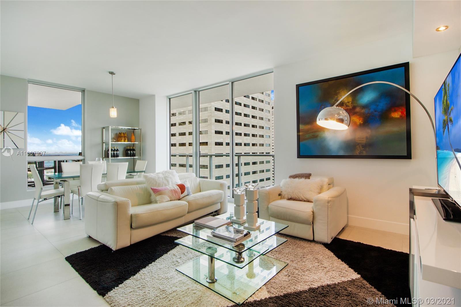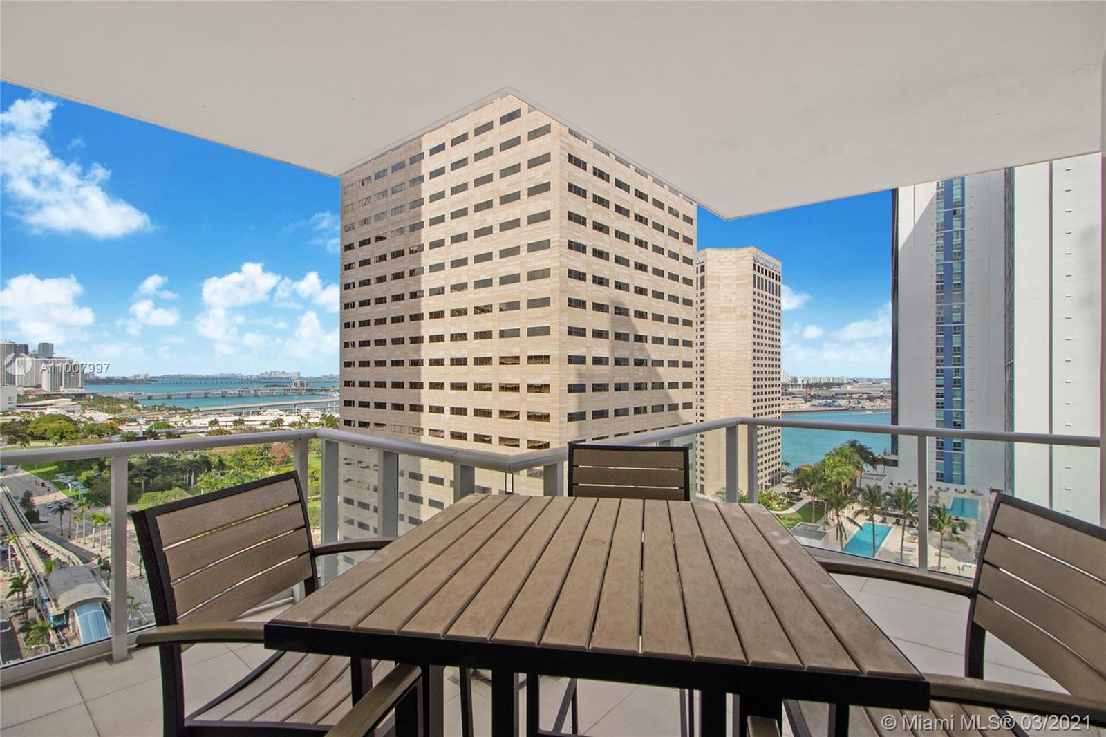 Experience the timeless appeal of waterfront living at Met 1. The panoramic views from this corner-residence include Biscayne Bay, Miami River, Bayfront Park, and Brickell Key. The "16" line's split floor plan is Met 1’s largest 2-bedroom residence, with ten-foot ceilings helping to provide optimal space and privacy. Both bedrooms include ensuite bathrooms and custom built-in closets. The master bedroom opens to a wrap-around terrace overlooking the water and city skyline. Met 1 offers a balanced lifestyle, combining a state-of-the-art fitness center with floor-to-ceiling windows, resort-like amenity deck with a heated swimming pool and hot tub, spa with sauna, and many outdoor spaces. This residence is unparalleled when it comes to space, value, waterfront views, and quality of life.