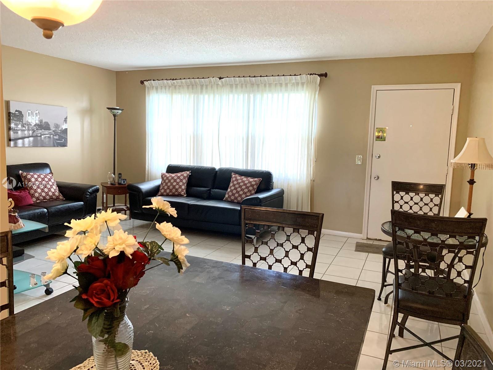 Spacious 1 bedroom 1/1.5 bath condo located in the exclusive Century Village guard gated community inside the New Hampton subdivision. This unit features ceramic flooring throughout. Conveniently located on the first floor. Screen patio located off the bedroom with view of the golf course. This 55 and over community offers many amenities, fitness center, transportation, golf, pharmacy, market place with a hair salon, doctors office on site, tennis courts and more! CAN RENT IMMEDIATELY. Unit can also be sold furnished.