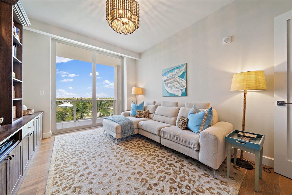 Exquisite opportunity to own a 5th (top) floor residence in Palm Beach Garden's newest luxury condo, Azure. Enjoy Ocean breezes + panoramic VIEWS from this end unit that lives like a single family home. A private elevator opens to this 3000+ sq. ft Impeccable bright + airy home w/ 800 SF of wraparound lanai! Grand floor plan offers 3 bedrooms w/ ensuite baths plus a spacious den/office and cozy dining nook by kitchen. Designed for Florida living with a neutral color palette and coastal ambiance, this home offers the finest in modern design elements including hardwood floors, custom kitchen w/ silastone counters + Thermador appliance suite. Spacious master bedroom is private w/ Huge closet + luxe spa bath w/ stone shower. Residents of Azure enjoy private walking trails, 2 pools + modern