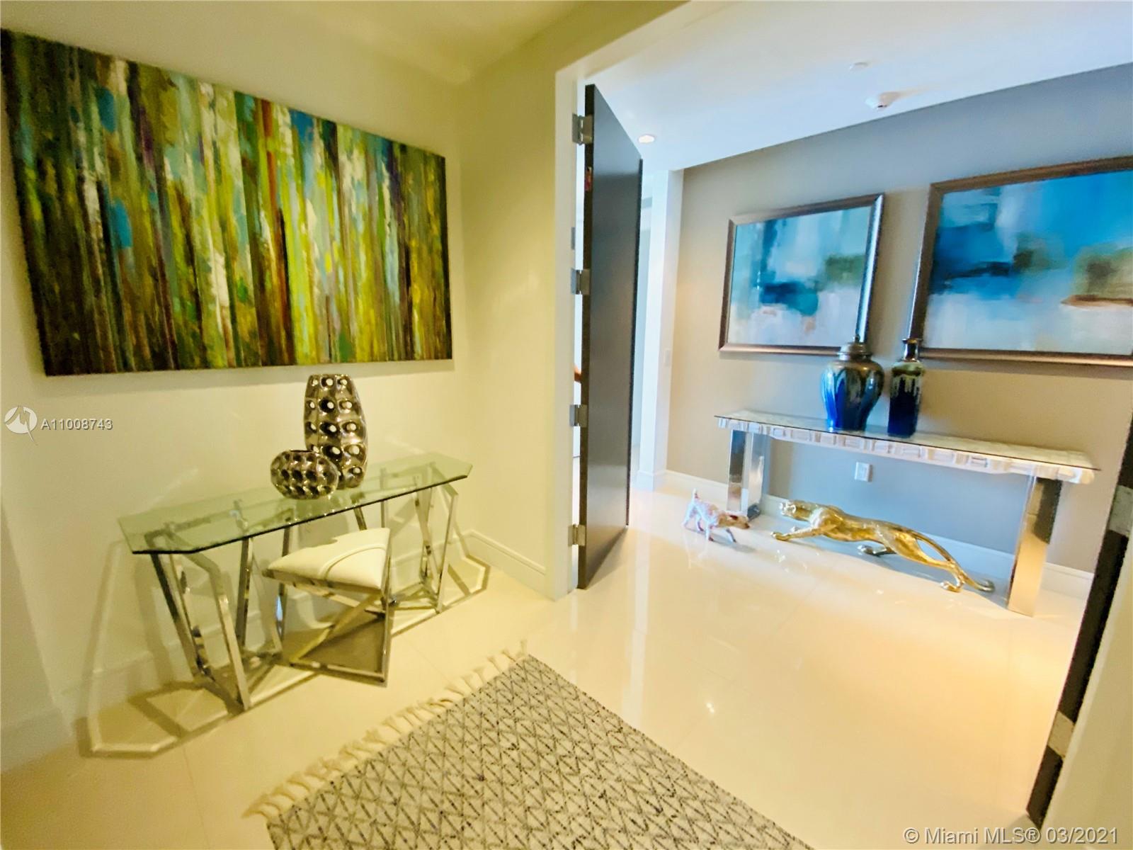 LUXURY BUILDING WITH BAY VIEW. Gorgeous unit with private elevator. 3 bedroom and 4.5 baths + Service suite, marble floors, private elevator, gourmet kitchen, subzero appliances and wine storage, wolf gas stoves, summer kitchen in a huge balcony. Customizes closets, blackouts curtains on all the bedrooms and living room. Unit features ceilings; apple home technology, personal services define ultimate luxury. This resort style unit has a total of 3,215 square feet, including the balconies, with a full functioning maid quarter and a full laundry room. State of the art amenities with infinity pool, a complete gym and SPA, valet. Unit comes with 2 parking spaces and storage. Just in front best school of Aventura minutes from malls, restaurants and beaches.