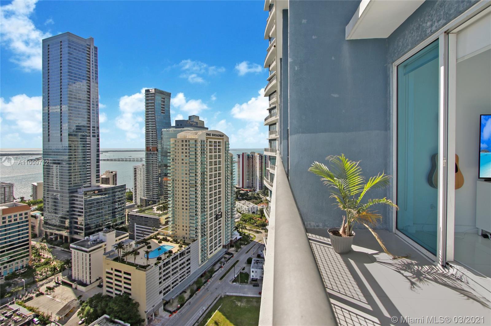 : Live in the Heart of Brickell! Largest layout for a 1 Bedroom + 1.5 Baths at Infinity. Loft style unit with almost 1,000 sq ft with panoramic views of the ocean and Miami skyline. Finished with white porcelain tile flooring throughout, light wood kitchen with stainless steel appliances & granite countertops, both floors have 10' ft ceilings. Full Amenities Bldg pool, gym, spa, 24 hr valet, 24hr concierge and more. Walking distance to shops, restaurants, etc! Unit is rented until July 12th, 2021 at $2,100/MO (excellent tenants).