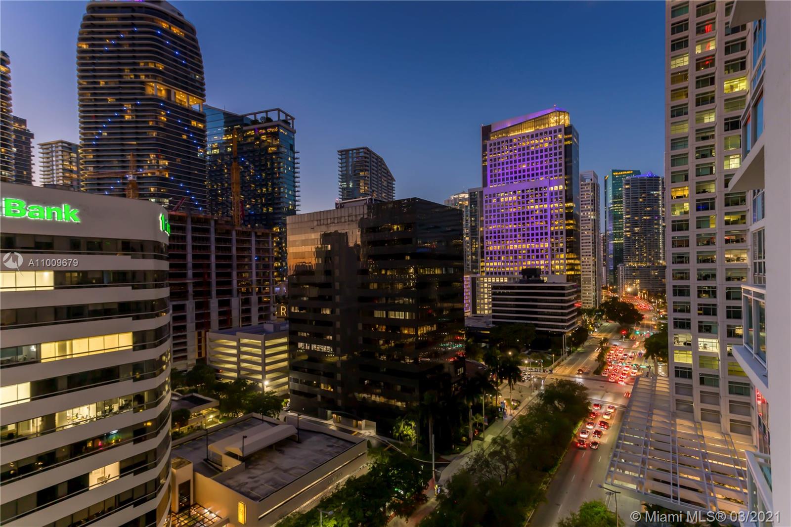 Exquisite 2 bedroom 2 bathroom, 15th floor unit with a spectacular city view! Unit features extremely rare European Oak wood floors, black stainless steel appliances, granite counter tops, floor to ceiling impact glass windows, a private balcony with glass railings, slide out kitchen pantry drawers, ample master bathroom storage space, walk-in closets in both bedrooms & washer/dryer in unit. Resort style amenities including a fitness center, 2 infinity edged pools, steam rooms, a theatre room, a club room & a lounge. 24 hour concierge & valet parking. Situated on the highly sought after Brickell Avenue, just blocks away from Brickell City Centre & in the heart of Miami's finest dining, shopping & night life.