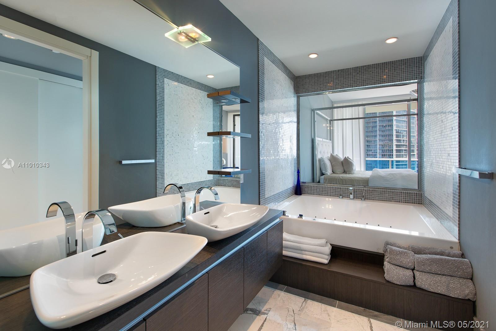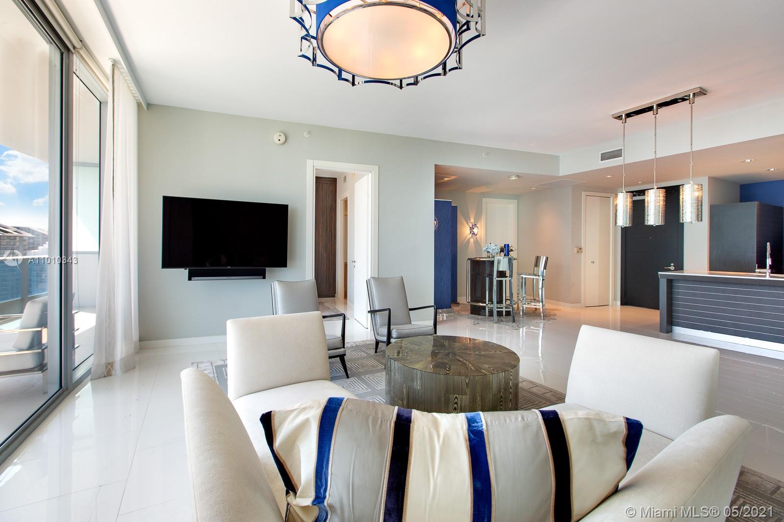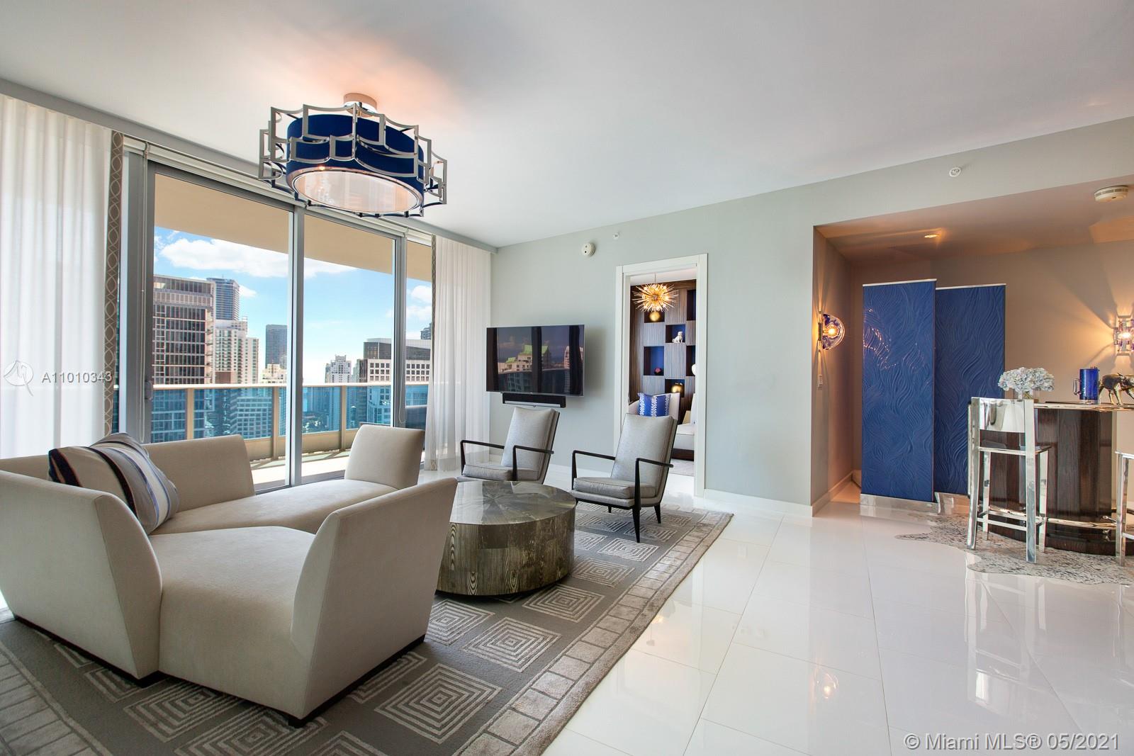 VIEWS- VIEWS -VIEWS! Picture perfect ocean, bay, Miami River, & Miami Skyline vistas from this “EPIC” residence. Spectacular, glamorous, and bright come to mind when describing this designer themed 2/2.5 penthouse-level residence, which is in the highly sought after "04 line" of the building. Have a drink and enjoy the view from the Art Deco themed Italian bar or the spacious 46th floor balcony. The open kitchen is outfitted with Miele and Bosch appliances, and state-of-the-art technology control systems including security, lighting, and window treatments are throughout. Epic residences feature luxury amenities including a private pool for residents and concierge-elements. This turnkey property designed by Taylor & Taylor can also be purchased fully furnished at LIST PRICE.