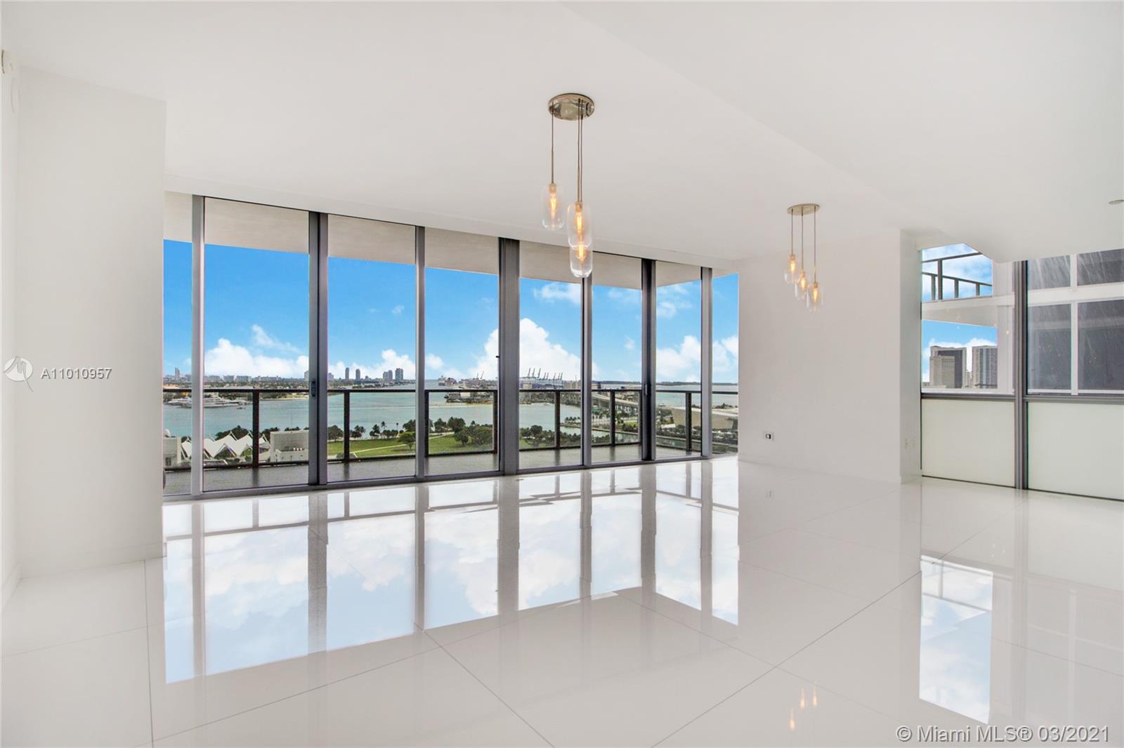 Stunning views of Biscayne Bay and Downtown Miami from this large 3 bedroom / 3.5 bathroom unit. Located in Downtown Miami, best location in Miami, steps away from Museum Park, direct access to main highways; 15 min to Miami Beach, minutes away from Brickell, Midtown and Wynwood, etc.. This Class A residential building has unique amenities such as Basketball half court, boxing gym, Yoga studio and full gym and spa (For kids: music classes, swimming clases). This luxury residence features private elevator access, porcelain tile floors throughout Viking appliances, walk-in closets and a spectacular open kitchen. One of only a select few units in the building with this expansive floorplan. Easy to show.