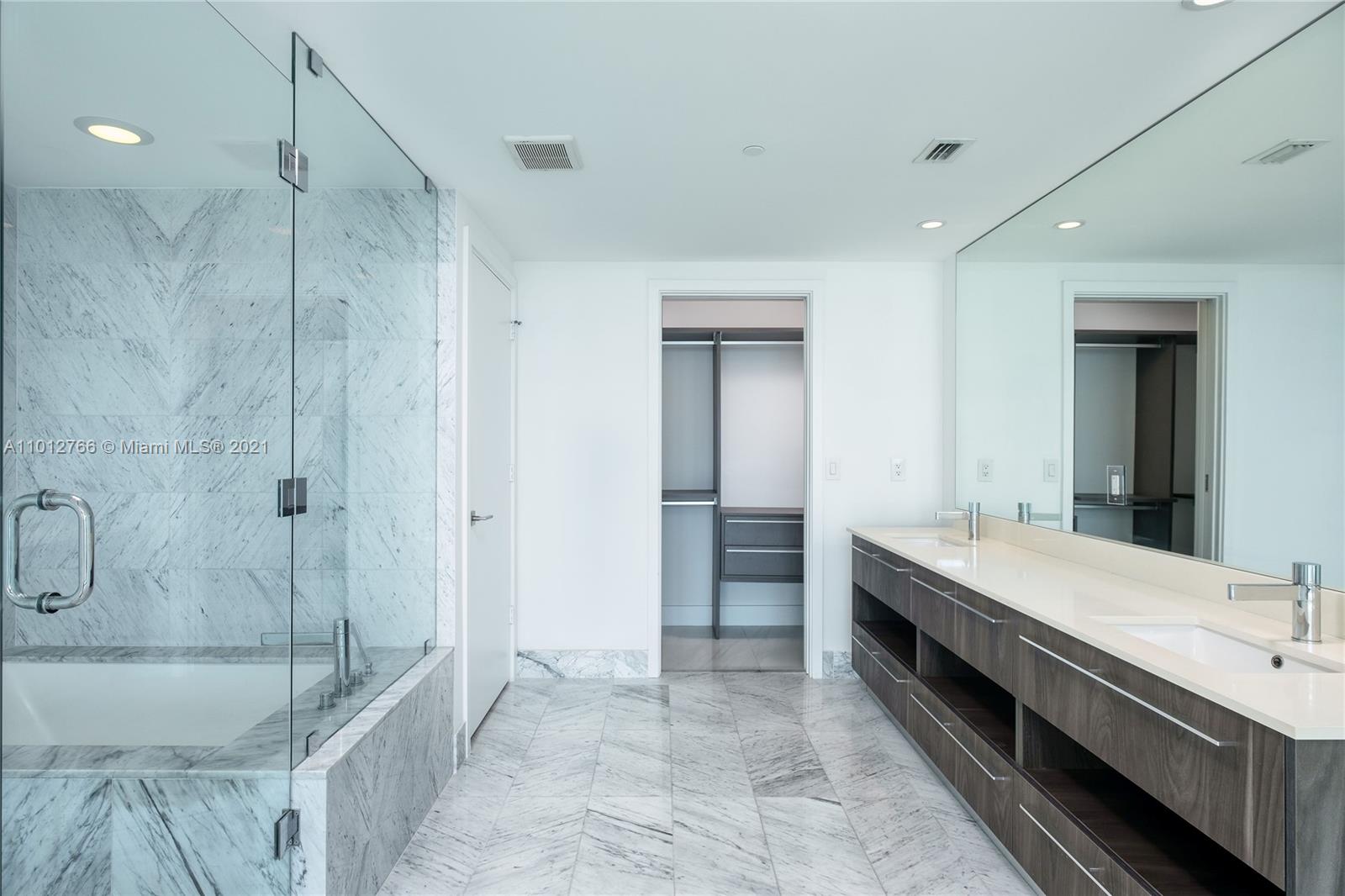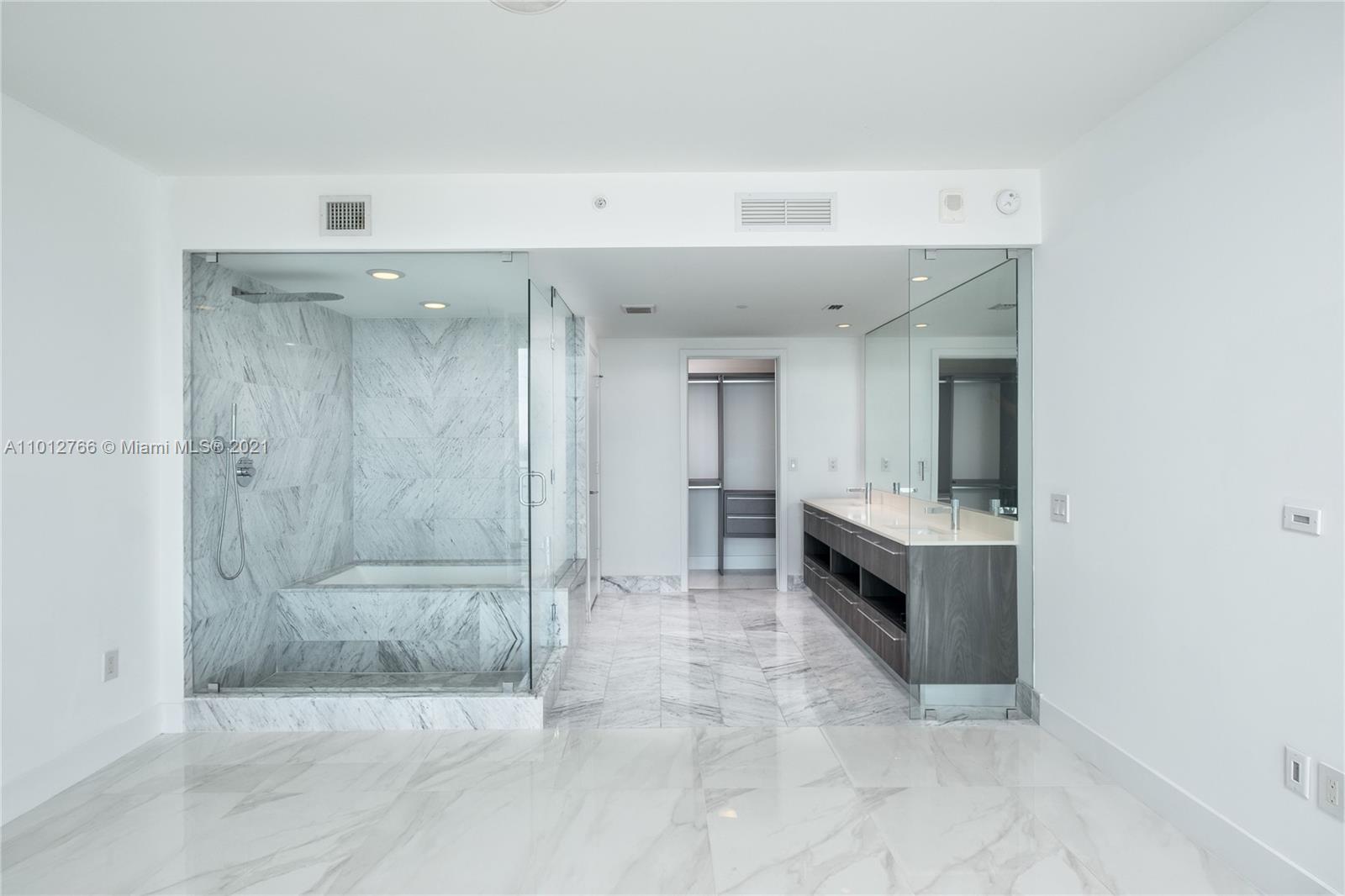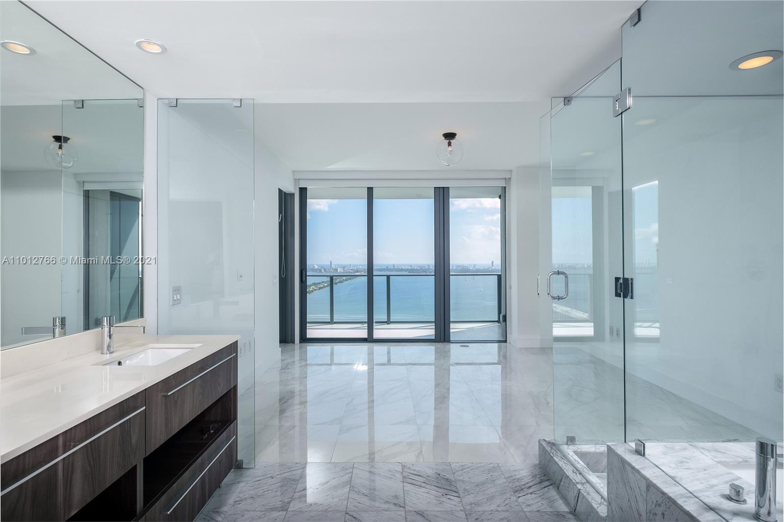 Stunning 2-bed/2-bath unit with private elevator and foyer. Finished with top-of-the-line white calacatta marble flooring throughout (the balcony included). Electrical shades and blackouts. Imported Italian closets in both bedrooms. Not a dime saved on lighting fixtures. The ocean view of the unit is breathtaking and unobstructed from its enormous balcony. The Paraiso complex offers a 3-acre resort deck with a heated swimming pool, outdoor spa, poolside cabanas, summer kitchen, jogging circuit and beautifully landscaped sun terrace. Residents enjoy a clubroom with billiards, fitness center, health spa with steam and sauna facilities, private screening room, wine cellar, cigar lounge, and a bayfront beach club and marina