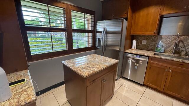 Large corner 2/2 villa with updated kitchen, formal dining room, ceramic tile thru out. located on Lake Irene just across from the satellite pool and mail room. Impact window complete and opened porch included in living area. 4 ceiling fans, floating island in kitchen, Bahama shutters on all the windows.