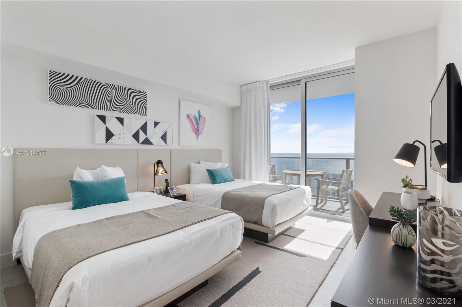 Investor Opportunity! Short Term Rentals Allowed = No rental restrictions. This unit can be rented by the owner or with the hotel program. Spectacular luxury unit located in Hollywood Beach with open intracoastal views. Beautifully decorated by well-known interior designer. Corner unit with wrap around balcony. Hotel features and services available to owners. Amenities: Private rooftop with panoramic water views, expansive pool deck with BBQ and lawn area, pool, jacuzzi, snack bar, fitness center, tennis, racquetball/basketball, aqua club, spa, business center, party room and beach club across the street on Hallandale Beach.