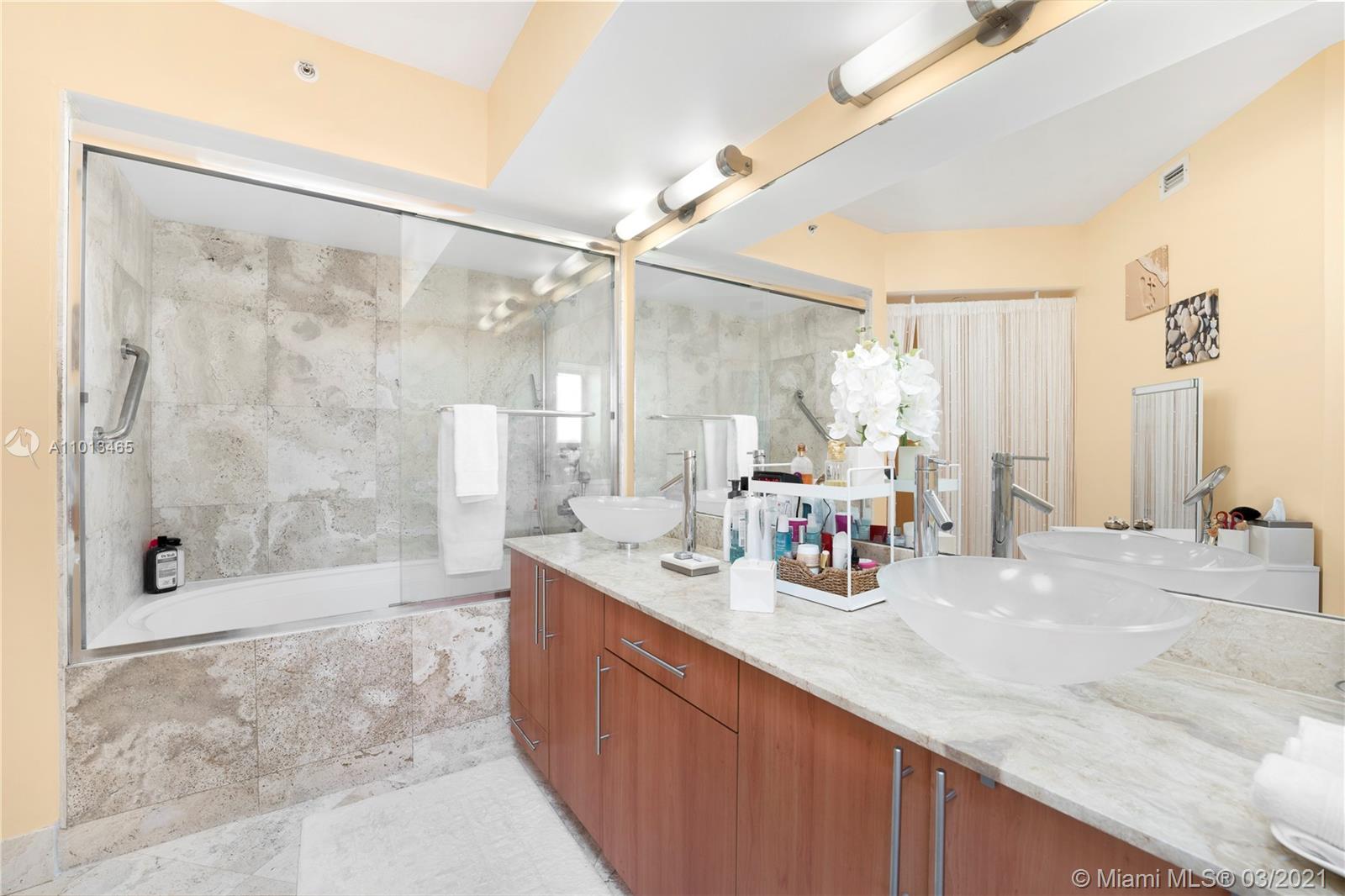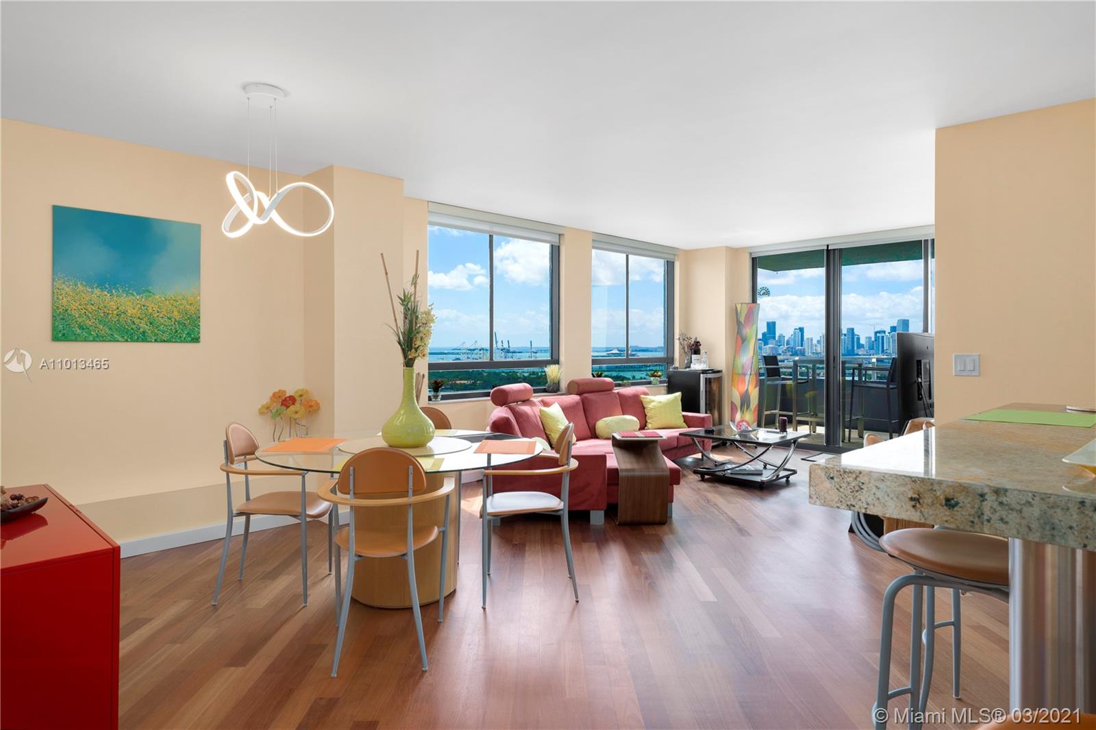 Breathtaking views of the bay, city, and ocean from every room! A renovated 2 Bed/2 Bath corner unit at The Waverly at South Beach featuring Brazilian cherry wood floors throughout the main living areas, travertine marble in the bathrooms and kitchen, a laundry room w/ full-size washer & dryer, stainless steel kitchen appliances, granite countertops, and a spacious balcony from which to watch daily sunsets over the Downtown Miami skyline & Biscayne Bay. Tons of natural sunlight! Includes 2 parking spaces (1 assigned + 1 valet). Building amenities include a fully-equipped fitness center, sand volleyball court, party room, bayfront pool, hot tub, business center, convenience store, tennis court, BBQ, 24-hour valet, and more. Whole Foods, Lincoln Road Shops, and beach within walking distance.