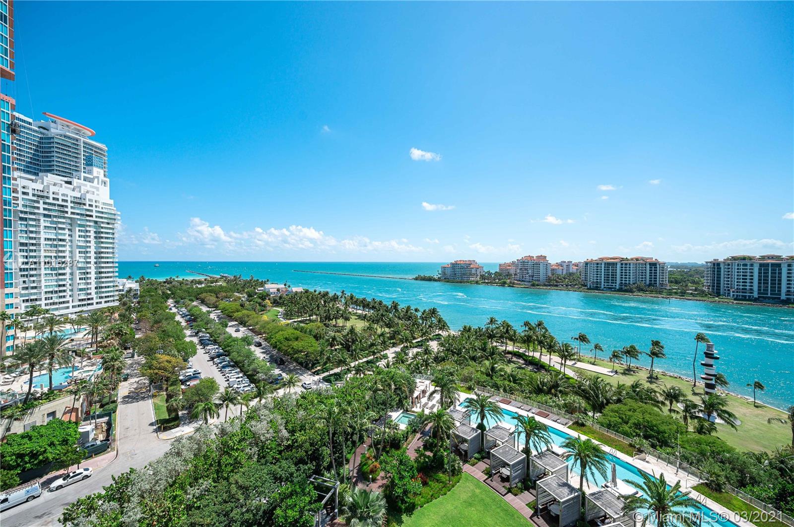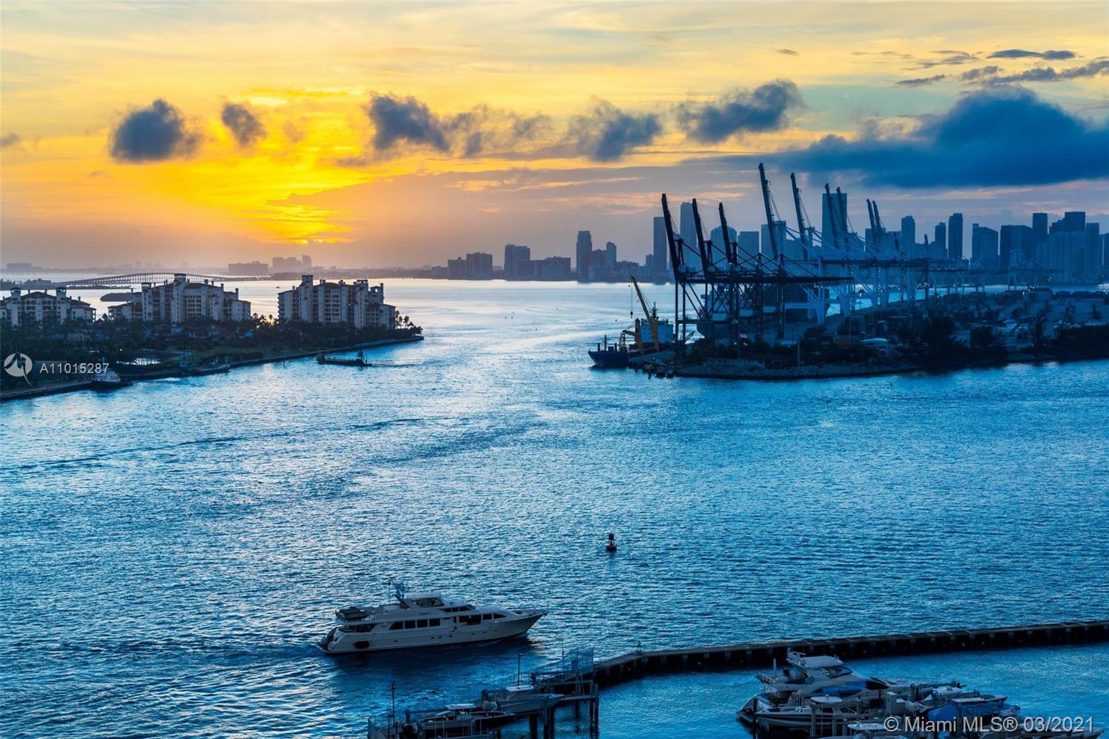 Hyper Exclusive Apogee! 2,744 sq ft of serene unobstructed views of the Atlantic Ocean, Port of Miami, Fisher Island, Miami Skyline & Art Deco SoBe. Private 1,200 sq feet of 11 ft wide balconies encompassing both Southeast and Northeast views featuring summer kitchen. Flow through design giving you both water & city views. All stainless steel chefs kitchen with full-height glass-fronted wine fridge. . 10-feet high Ceilings. Private elevator. A/C 2 car garage & storage unit. Luxurious amenities; an attended resort-style pool, poolside cabanas, full-service concierge service, 24-hour valet parking, spa, and state-of-the-art fitness center. The most exclusive luxury amenities' in all of South of fifth living.