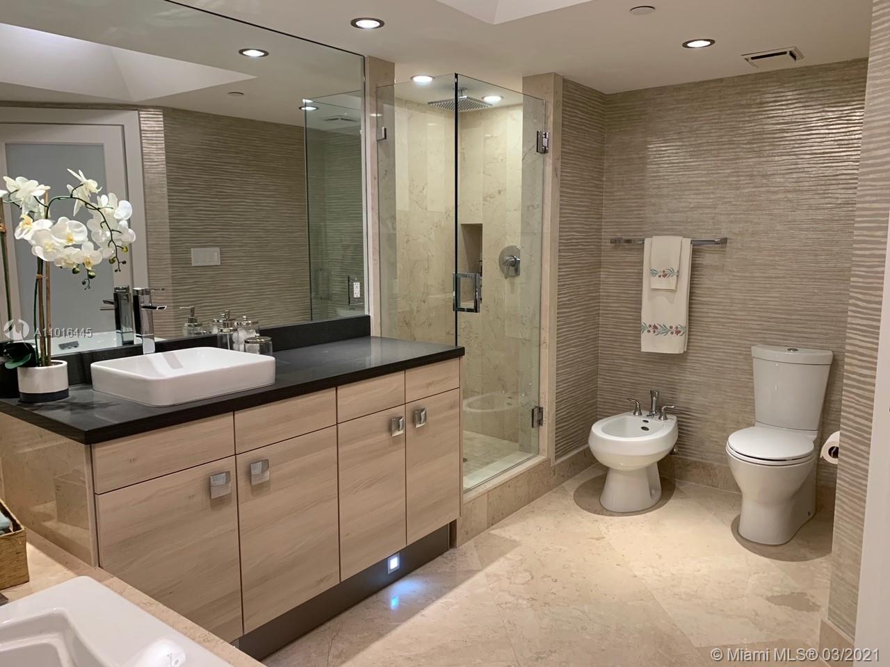 Absolutely stunning 3,585 sq. ft. residence on picturesque Williams Island. Completely renovated to the highest standards. The residence boasts 4 Bedrooms / 4.5 Baths / Bar / FULLY EQUIPPED HOME OFFICE for 2 / Laundry Room / separate storage/ utility room. The palatial Master Suite is complete with a home office and boasts separate His & Hers bathrooms as well as His& Hers Walk-In Closets. 2 units (406/405) combined into 1 spacious open floor plan with absolutely incredible views and expansive balconies. The pictures do not do it justice. Custom cabinetry by Nolte Kuchen complimented by Gaggenau & Subzero Appliances. Unit has Hurricane Shutters & balcony railings have been converted to glass. SELLER WILL PAY ALL CURRENT ASSESSMENTS AT CLOSING.