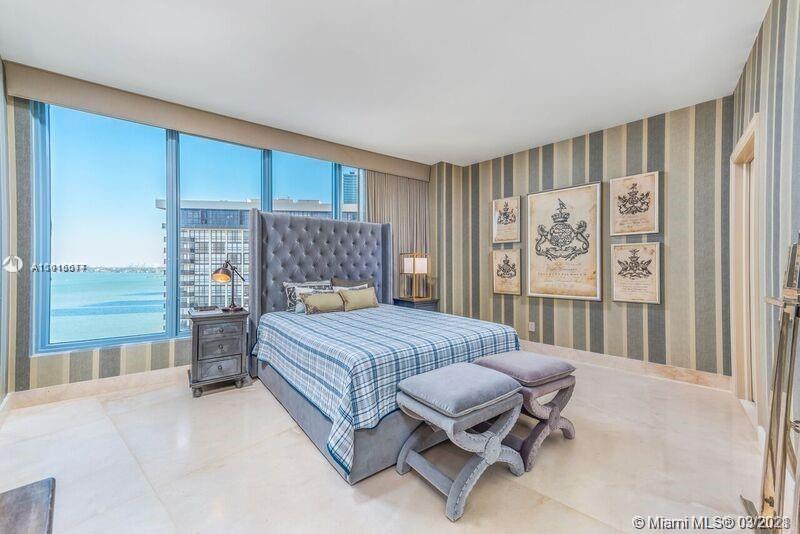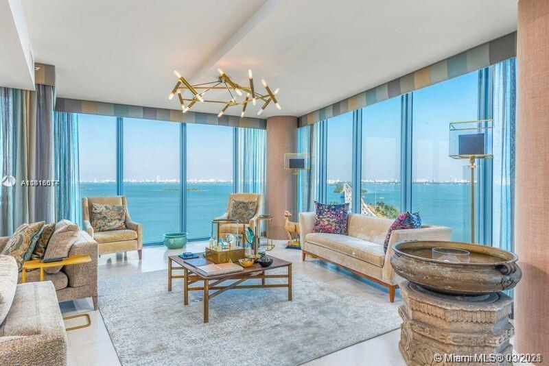 Beautiful designer renovated and furnished unit with over $300k worth of renovations with design district furnishing. Large 2br 3 bathrooms in Blue! Panoramic water view from every room! New bathrooms, kitchen, flooring. huge 4ft by 4ft marble floor throughout. Sub zero and Miele Appliances. all designer lighting and fixtures. easy to show.