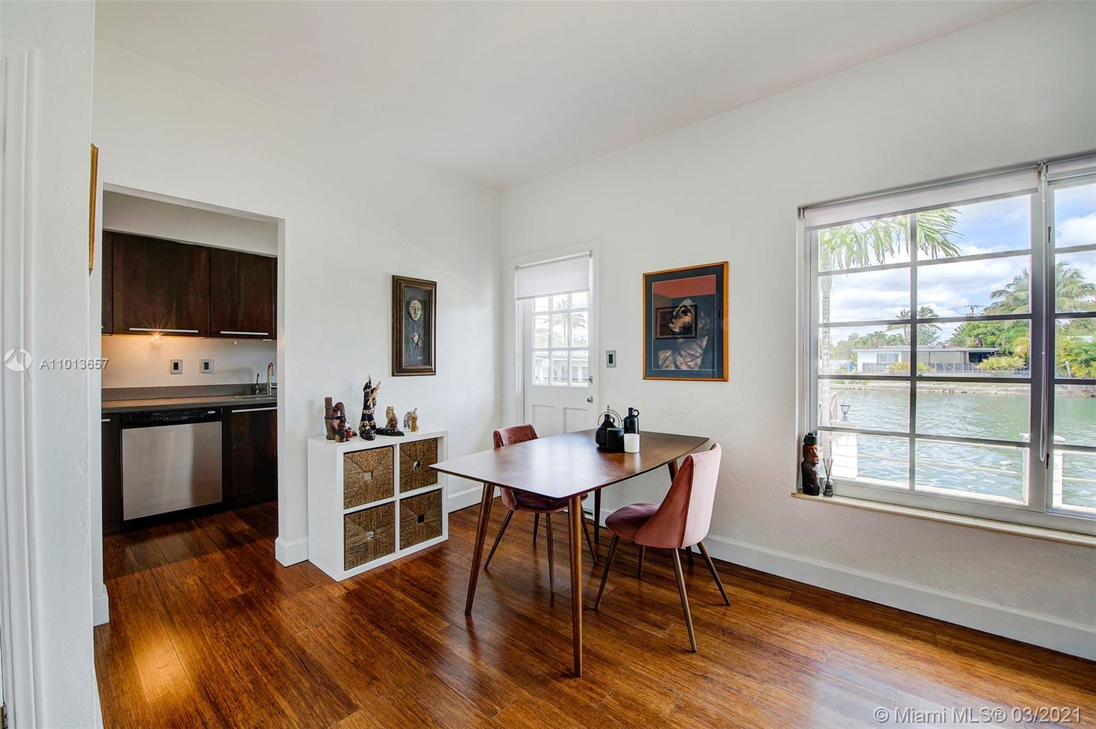 The BEST unit in a charming Art Deco building in Miami Beach's exclusive Normandy Isle. This waterfront garden apartment is a hidden gem. The boho lady has been tastefully renovated with a new kitchen and bathroom with stone mosaic walls and hurricane impact windows. Enjoy expansive water views in this peaceful and sunny home. Off the deck in front of your door, you can launch your kayak and the Bay is right around the corner. Normandy Golf is within a short walk where you can enjoy the clubhouse, outdoor gym and waterfront tennis courts. The home has attractive wood floors, wooden kitchen cabinets and modern gray quartz countertop. There are plenty of storage closets. The living room, dining area, kitchen and bedroom, all offer direct water views. I warn you, this is love at first sight!