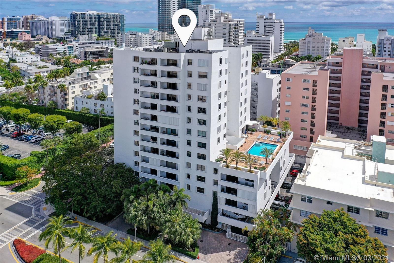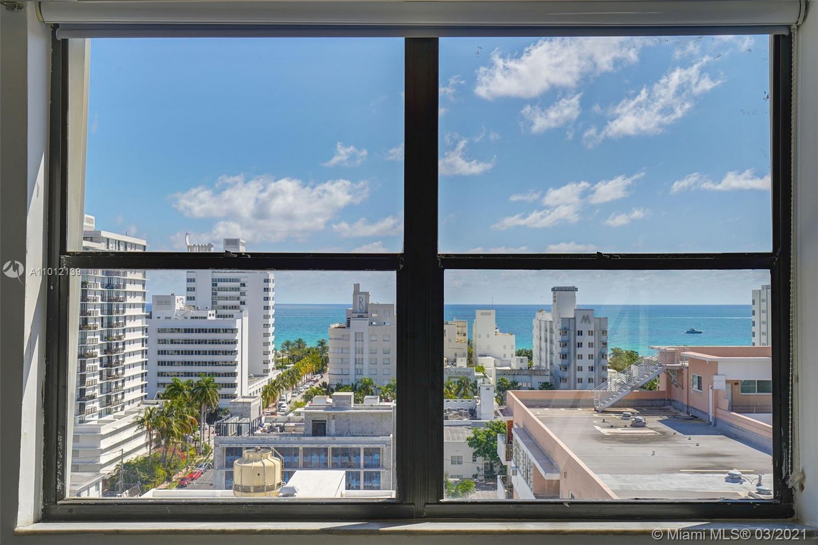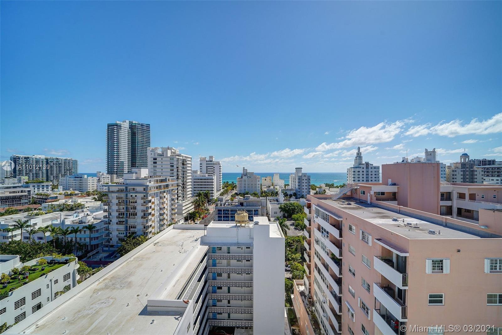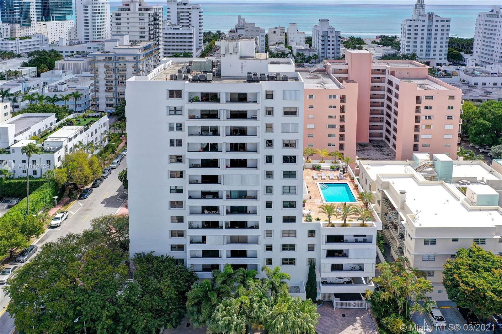 2 Blocks to the Beach! 2 bed/2 bath condo with Ocean View overlooking the Miami Beach Skyline! Remodeled Kitchen, Remodeled Baths, Polished Concrete Floors, Balcony, Corner Unit, faces direct East, Assigned Covered Parking, Washer-Dryer, Doorman! Amazing location in the heart of South Beach! 1 block to Lincoln Road. Easy to Show!