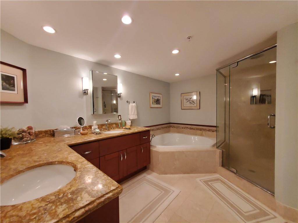 Vue Resident & Beach Club 2/2 Professional finishes. No detail was over looked. Corner wraparound balcony with Intercoastal and Ocean views. Marble floors throughout and Crown molding, open kitchen with Brazilian Rain Forest granite countertops, stainless steel appliances, washer/dryer. 2 pools - one WITH DIRECT ACCESS TO BEACH from the Vue's private beach club! Cable & Internet included, 2 parking spaces and 2 pet (up to 50lbs) Full service BLDG. 24hr Valet, front desk attendant.