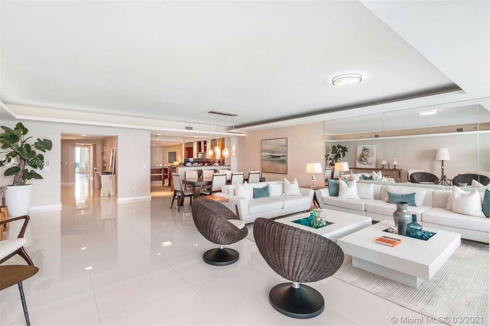 Amazing opportunity to acquire a turnkey residence at prestigious Trump Hollywood, an ocean front condominium that sits on 240 feet of pristine beach in Hollywood, Florida. This unique unit is flow thru with direct views of the ocean and the intracoastal, boasting 3395 sq ft of living area and two expansive balconies. It has been professionally decorated and is ready to move in. The spacious living space makes this unit especially comforting for either your new permanent home or your home away from home. The condominium also offers exceptional amenities such as beach and pool service, restaurant by the pool, 24 hour valet, gym, tennis courts, billiard, just to name a few.